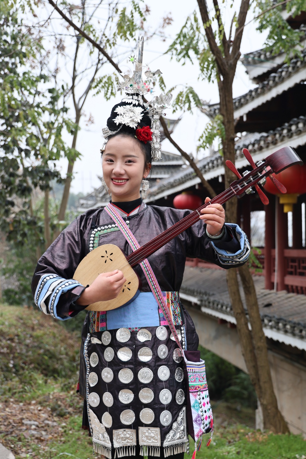 琵琶声从鼓楼廊下淌出,吴家佳的手指在弦上轻轻一撩,多声部的和鸣便如雾岚漫过吊脚楼顶。游客的镜头早已候在那里——这是他们想象中的侗寨:歌声、鼓楼、炊烟,如一幅活着的民俗画卷。