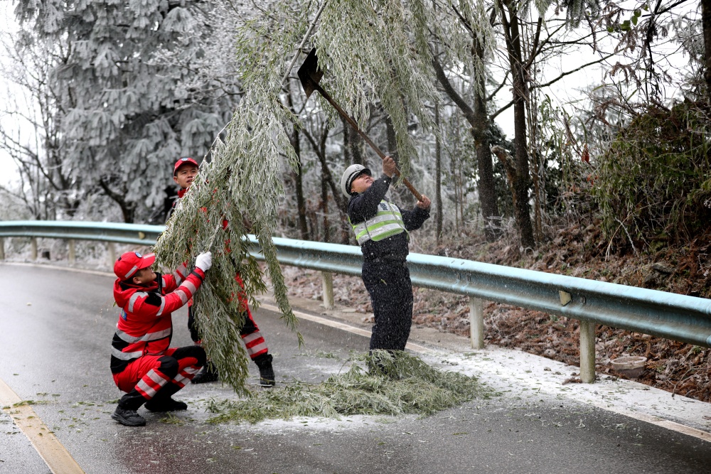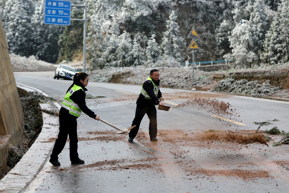 近日,贵州省雷山县迎来新一轮强冷空气,高海拔路段出现持续冻雨,路面结冰现象加剧,给群众出行带来极大安全隐患。雷山县公安局交管大队闻令而动,全体民警、辅警顶风冒雪,坚守抗凝保畅一线,用警察蓝身影温暖寒冬。