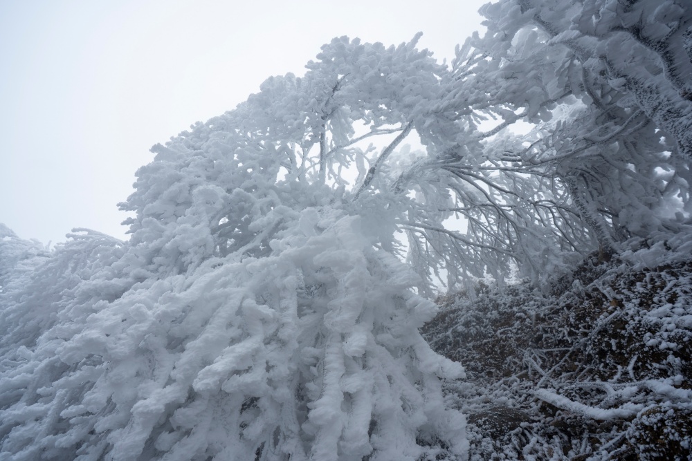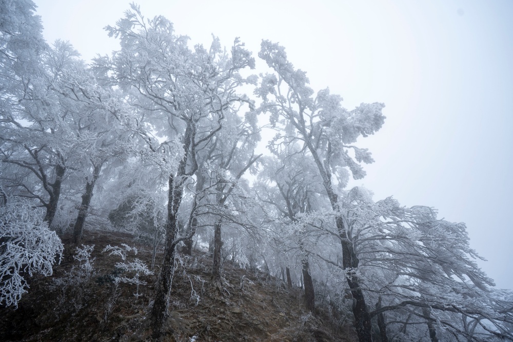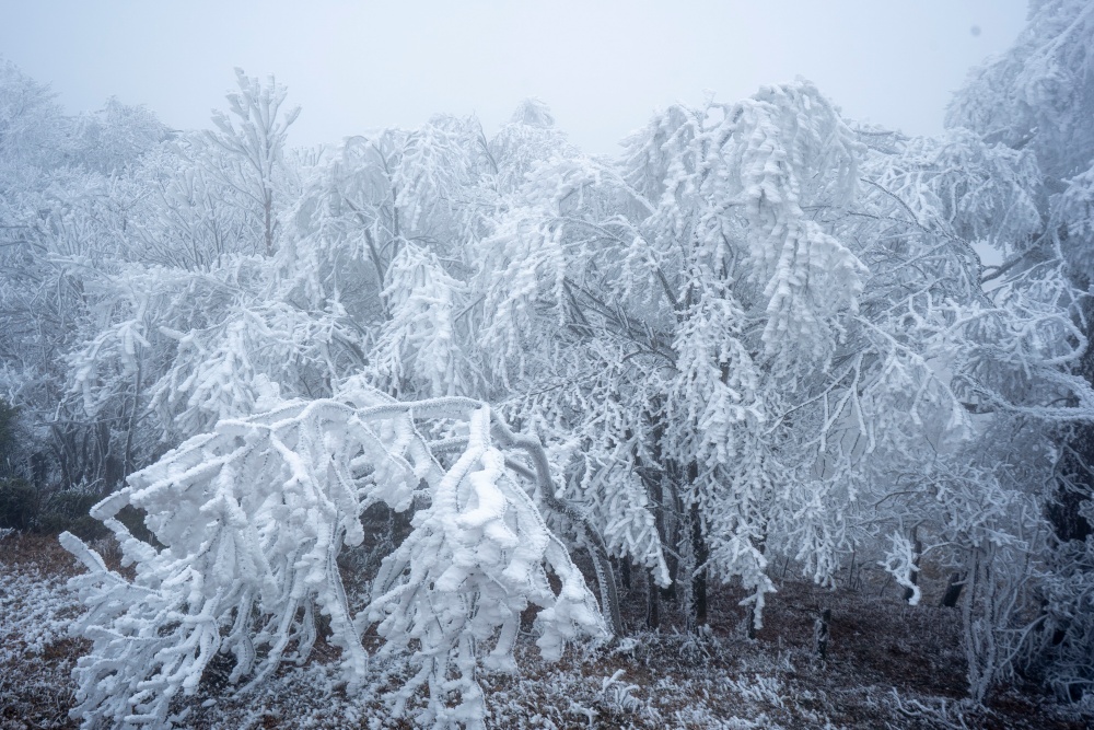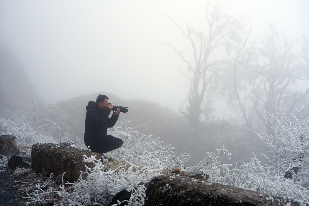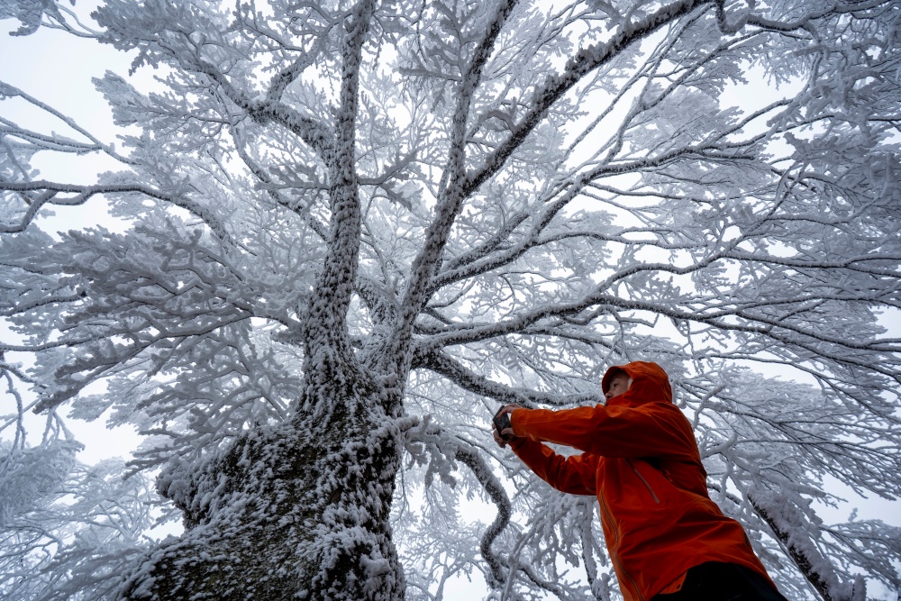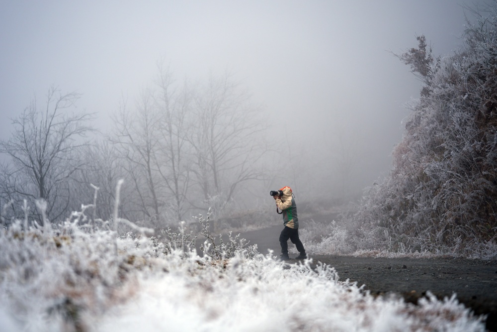 1月21日,贵州省黔东南苗族侗族自治州从江县加榜乡出现雾凇美景,放眼望去,晶莹剔透的凇花挂满了整个山顶,宛若冰雪童话世界,吸引了众多摄影爱好者前来观赏拍摄。