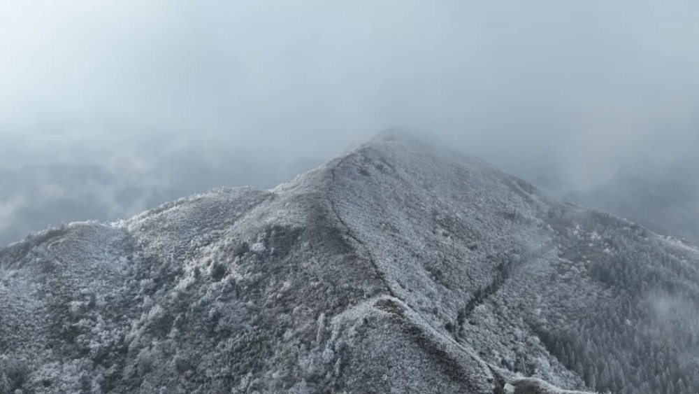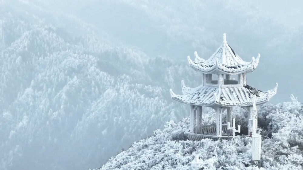 受强冷空气影响,丹寨县气温持续走低,最低气温降至-4℃。在海拔1474米的龙泉山顶,大面积雾凇景观悄然绽放,山峦叠嶂间银装素裹,宛如冰雪雕琢的童话世界,吸引众多游客慕名前来赏景打卡。