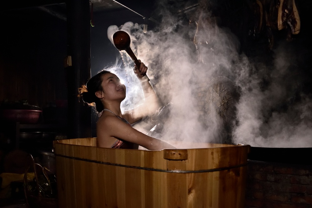 “我是专程为这个来的。”在高华瑶寨,从广州来的游客林先生指着热气蒸腾的木桶说,“柴火慢慢熬煮的药汤,有一种扎实的草木香气。泡进去那一刻,旅途的劳顿好像瞬间被化开了。”作为瑶浴的核心发源地,高华寨至今仍严格遵循古法。传承人赵春潮讲述:“药材都是当天从深山里采回,用柴火耐心熬上一个多小时,药力才能完全释放。”正是这份对原生态与本真工艺的执着,让许多访客在温润的暖流中触摸到了瑶家千年养生智慧的温度。