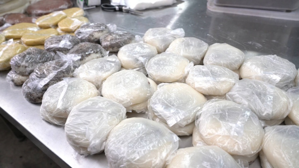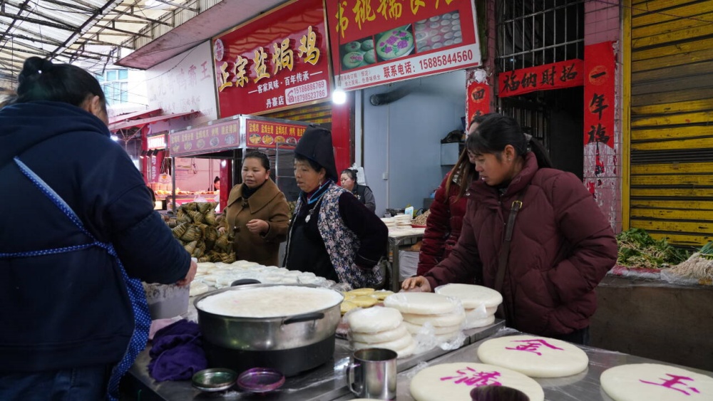 在丹寨县农贸市场,记者看到,小米糍粑、白糍粑、豆豆糍粑等各式糍粑整齐摆放在摊位上,商户刘小秀一家子正采用现代机器设备结合传统工艺制作糍粑,分剂子、包馅、定型、晾凉……软糯可口的糍粑新鲜出炉,空中飘溢着糍粑的糯香,是顾客争相选购的年节伴手礼。