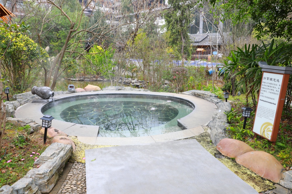 为进一步提升康养内涵,小镇依托天然温泉资源与本地草本优势,打造了系列功能型汤池与康养项目。用天麻、灵芝、杜仲组成的“贵州三宝”特色苗药区泡池,还有健“脾” 汤、养“心”汤、清“肺”汤等,通过不同矿物成分与水温的搭配,满足游客个性化的调理需求。将“泡汤”延伸为一场融合自然、文化与健康的全面康养之旅。