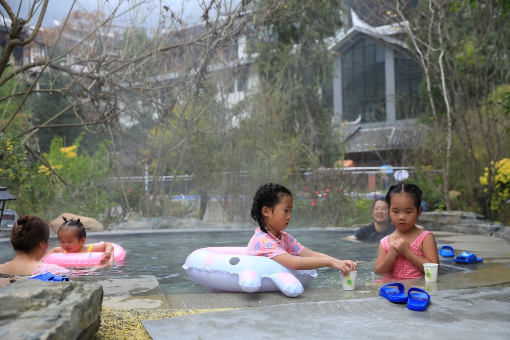 新颖业态也吸引了不少外地游客。来自湖南的胡女士特意带孩子前来打卡:“假期带孩子来体验温泉,没想到这么多惊喜,泡着舒服,服务也很贴心。”