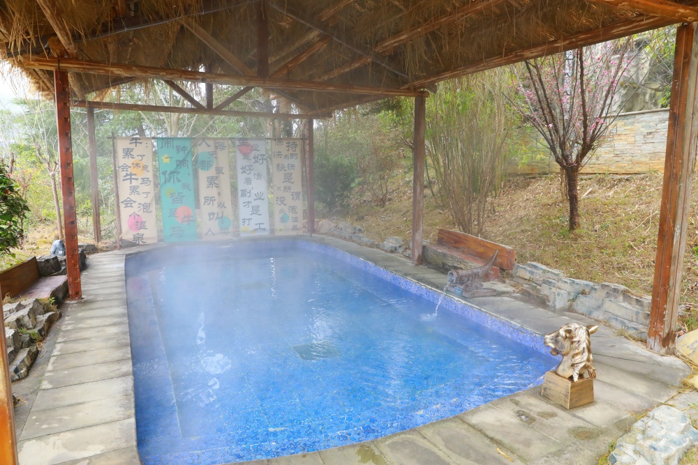 走进核心温泉区,主题化、场景化的汤池设计让人眼前一亮。自带网络热梗的“牛马”池是本次改造的一大亮点。汤池以浅褐色石材围合,池边设有趣味标语牌和卡通装饰,精准切中年轻人的社交语境,成为必打卡点位;“爱心”池浪漫十足,搭配心形装饰与落日氛围,池边点缀鲜花,水汽缭绕间氛围感直接拉满,适合情侣约会或闺蜜同游;充满地域特色的“折耳根”池则带来意外惊喜——新鲜折耳根与温泉水相结合,泡汤时可闻到淡淡草本清香,兼具养生与新奇体验;而“水仙花泉”周围绕以自然石景与水植,仿佛步入隐秘仙境,为游客提供一片静谧的休憩天地。
