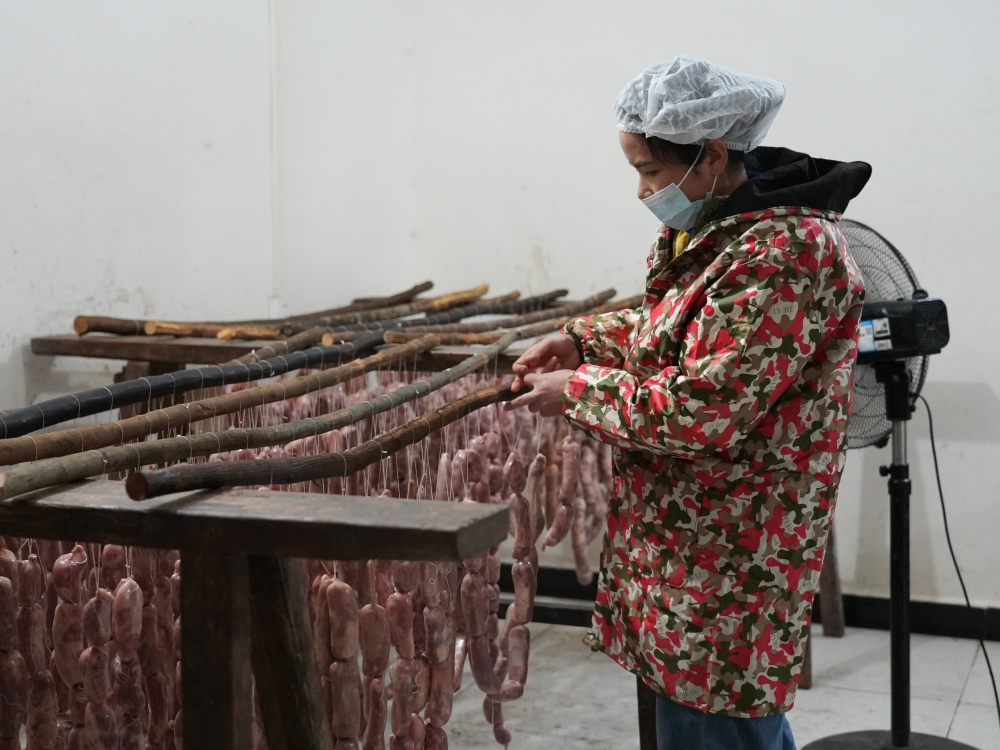“我们采取最传统的烘烤方式。”镇远县名城食品厂生产主任刘正芝轻抚着一条色泽金黄的腊肉介绍道。“用麻栗柴慢火烘烤28天,烤出的腊肉色香味俱全,回味无穷。”她进一步说明,在保持传统风味的同时,工厂近年来也着力推动制作工艺的现代化改良,“同时,我们采取低温低盐的制作工艺,符合当下人们健康饮食的需求。”