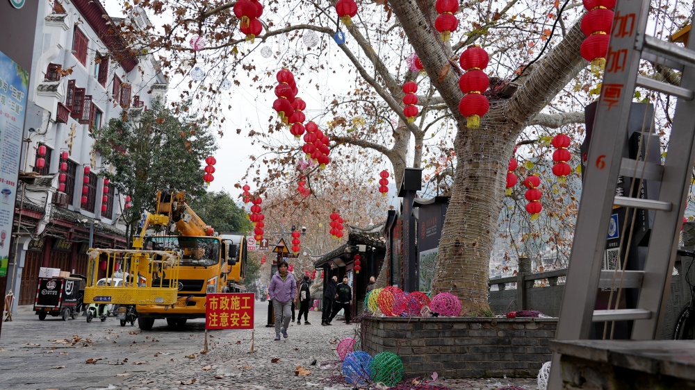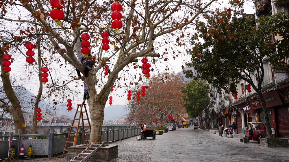 春节临近,镇远古城处处洋溢着喜庆祥和的节日气息。市政部门全力推进氛围营造工作,古城街巷间一派忙碌景象,年味正悄然浓起来。
