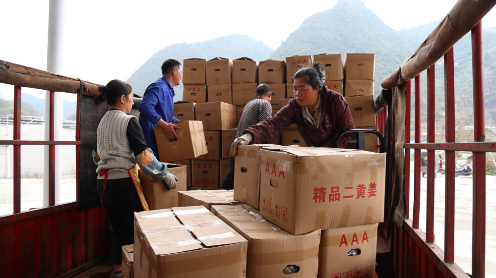 :“我们这儿海拔高,虫害少,基本不打农药。施肥也用有机农家肥,种出来的就是精品的绿色产品。看着自己种的姜要出国了,心里特别踏实。”看着自己种植的装车运往国外,种植大户尹琴喜上眉梢。