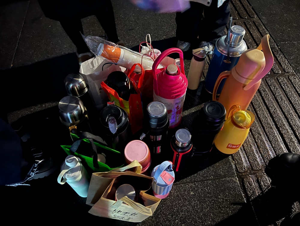 二月的第一天,周日,凌晨四点半,夜色与寒风包裹着凯里。街头传来“沙沙沙”的清扫声,环卫工人已经开始了他们日复一日的清洁行动。这时,一群学生们带着青春的面庞与诚挚的敬意,手捧姜茶,向沙沙声走来。