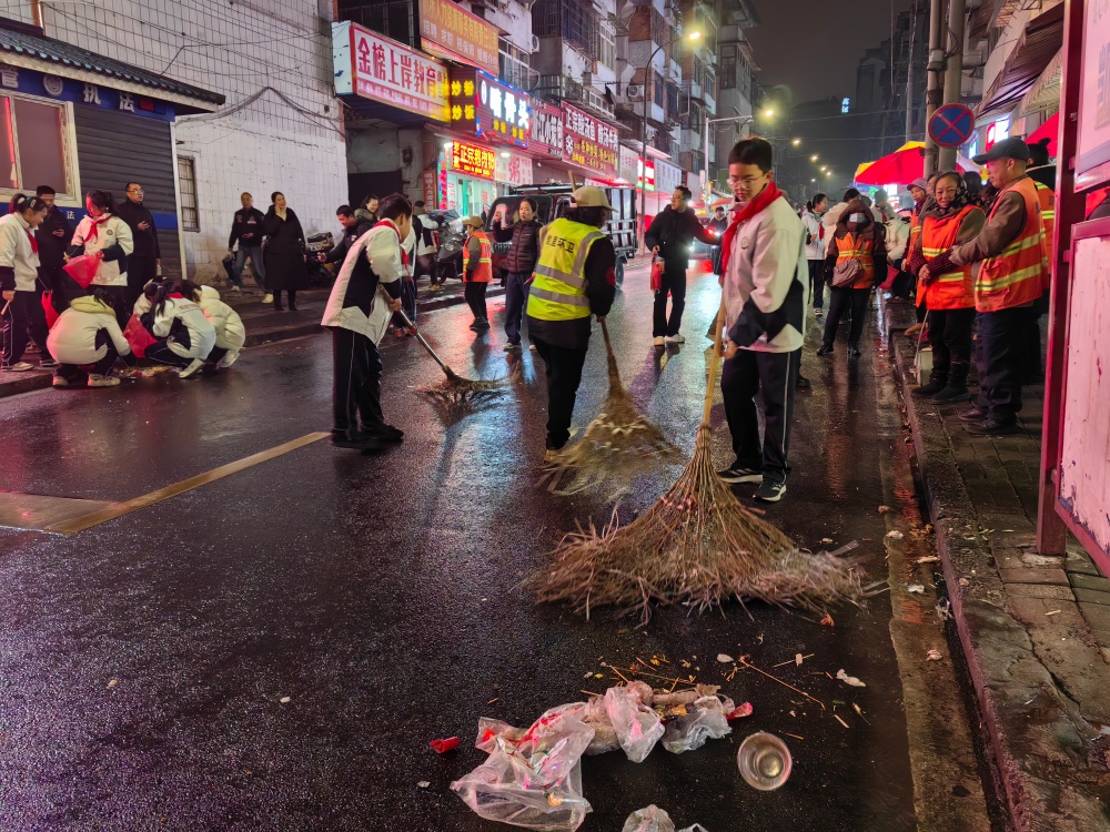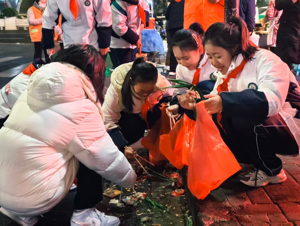 送暖路上,同学们还主动拿起扫帚,与环卫工人一起清扫,亲身感受“城市美容师”的辛劳。