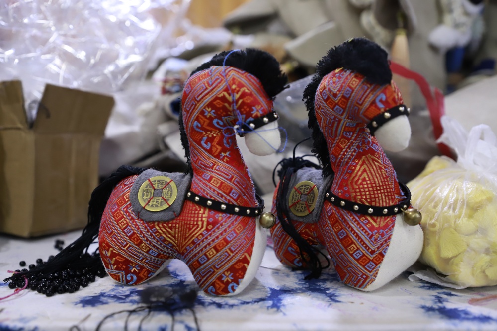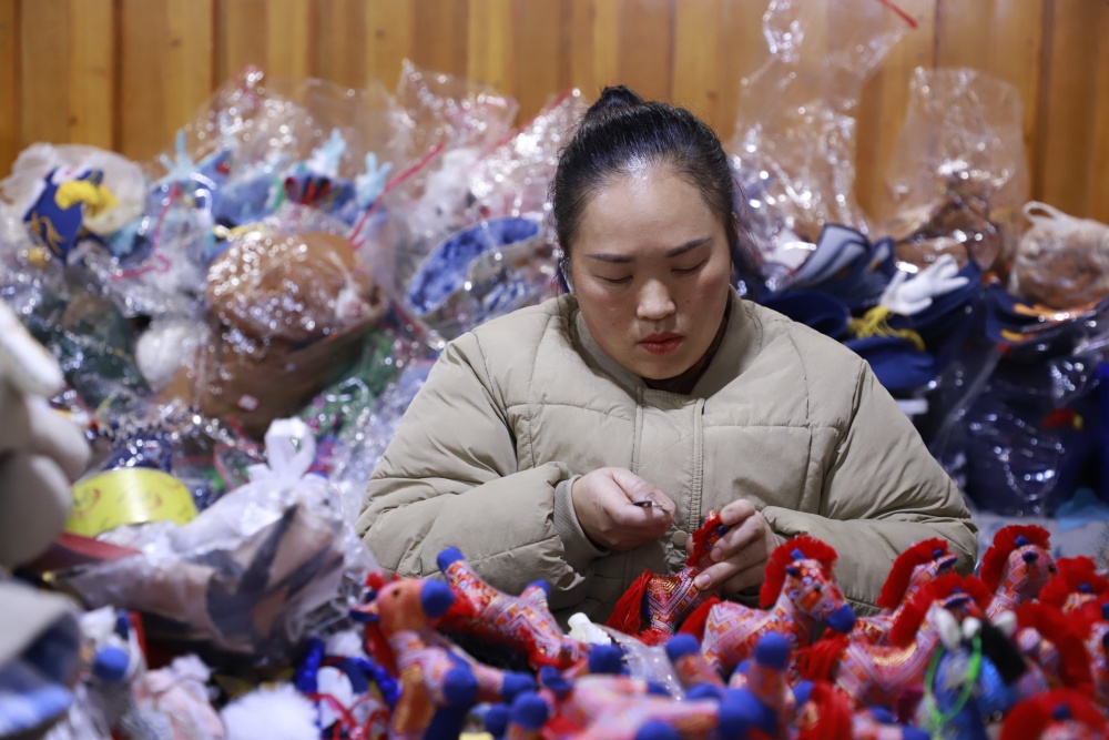 为了让产品既好看又好卖,公司提前半年就组建团队投入设计,深入挖掘非遗与生肖文化的结合点,将苗族刺绣、蜡染等工艺融入玩偶创作,使每件产品都富有观赏性和文化内涵。“这些玩偶做工细、寓意好,买来送人,传达‘马到成功’的祝福,特别合适。”特意前来选购的市民杨凯明手持刚买的玩偶,连连称赞。
