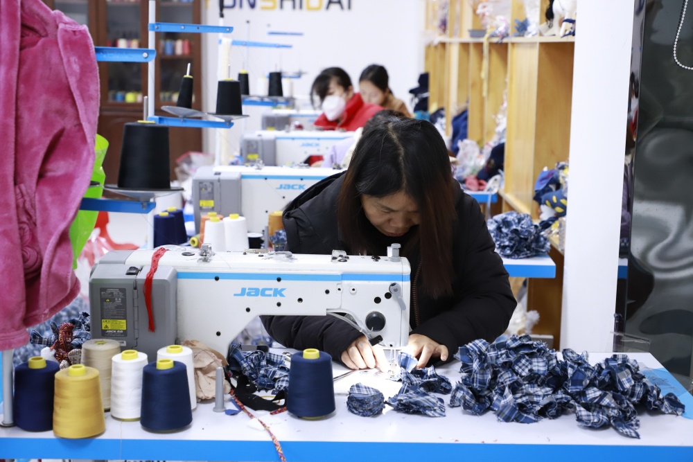 “订单要得急,大家都加把劲赶工。”绣娘王太凤手不停针,笑着说道。公司负责人袁飞飞介绍,目前马年文创订单已达11万件,车间满负荷运转,绣娘们轮班作业,确保按时交付。
