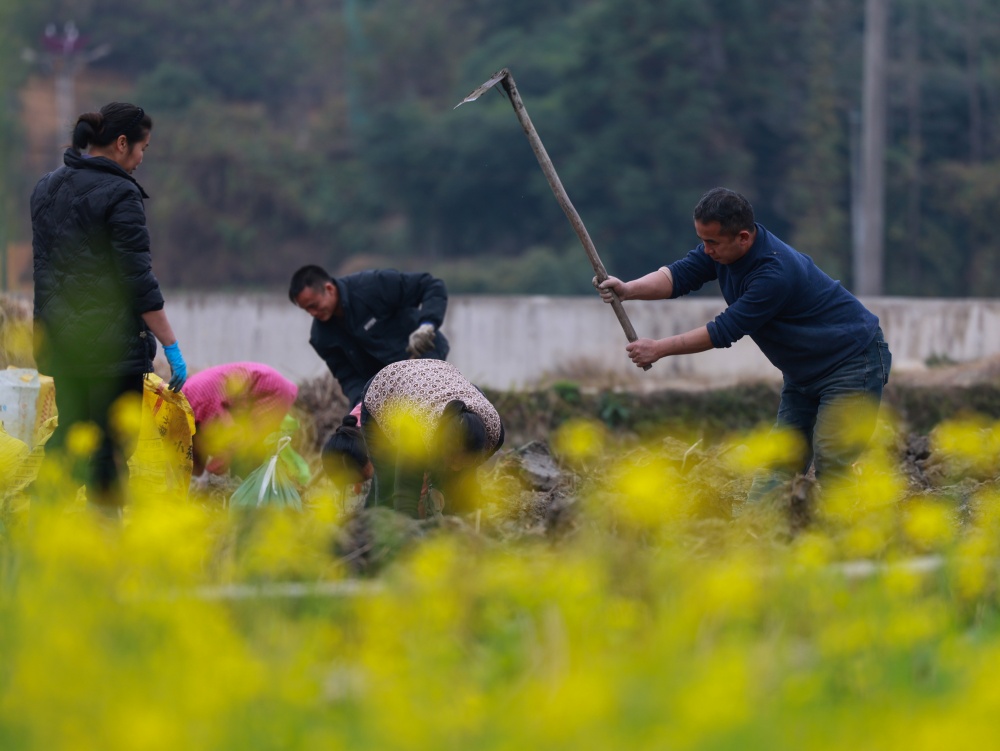 当日是二十四节气中的立春,贵州省黔东南苗族侗族自治州从江县贯洞镇各产业园、大坝农田的农民抢抓农时开展春耕备耕工作,田间地头一派人勤春早的忙碌景象。