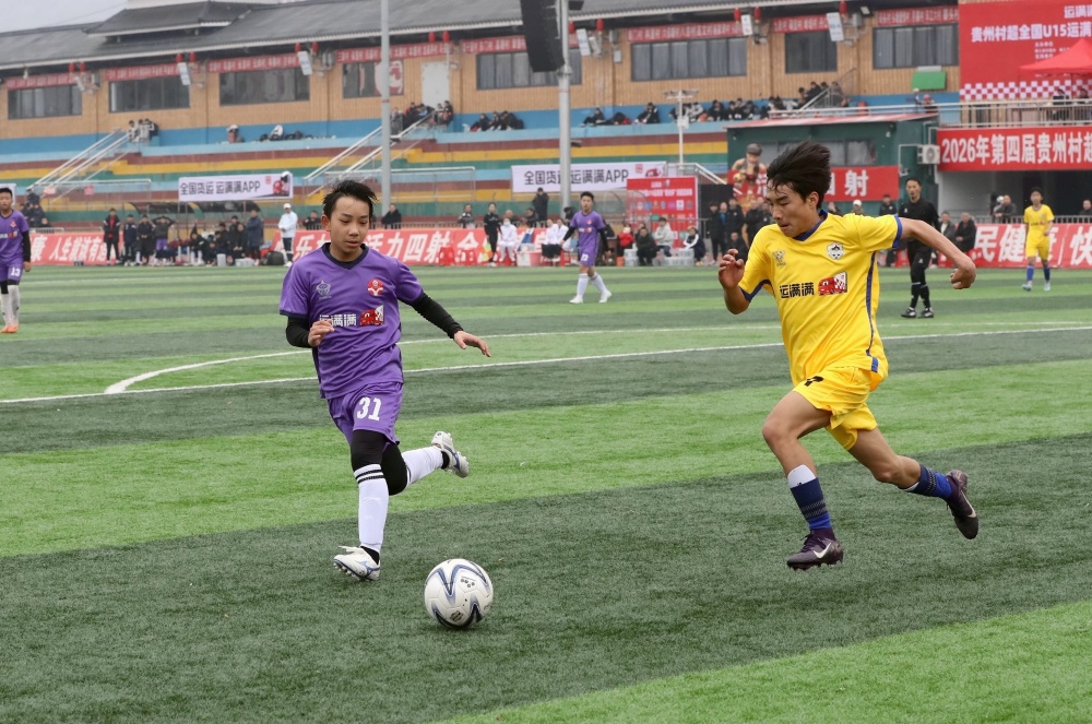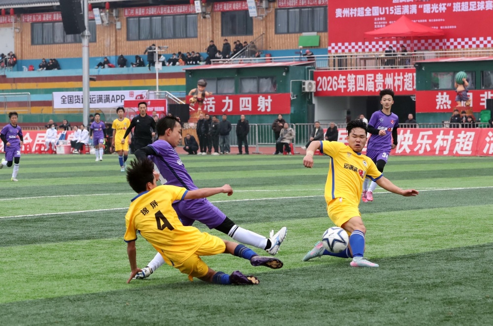 当日,2026贵州村超第一届全国U15“曙光杯”班超足球联赛在榕江县城北新区“村超”足球场开幕。来自湖南省会同县一中班超足球队与贵州省安顺市孟甲学校班超足球队进行首场比赛,随后,黑龙江省孙吴县第二中学犇腾青少年班超足球队、山东省岳峰小将班超足球队、湖北省宜昌星之舟班超足球队、四川省射洪聚贤体育班超足球队、贵州省榕江县青少年U15班超足球队、广西贺州万通机车班超足球队等16支班超足球队进行8场对决。
