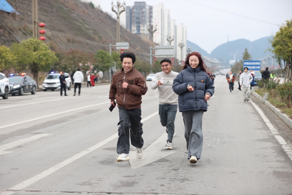 半个小时后,随着发令枪响,参赛队伍如潮水般冲出起点,沿5公里定制赛道奋力向前。途经黄弓大桥、岑巩四中、县委党校路口、岑巩四小、温泉小区,最终抵达坪贤大桥。赛场上选手们奋勇争先,沿途群众自发驻足助威,脚步声与欢呼声交织成新春的交响乐。
