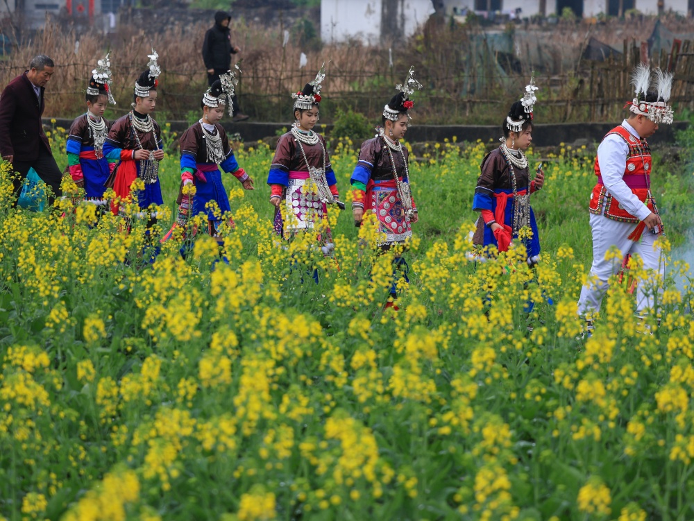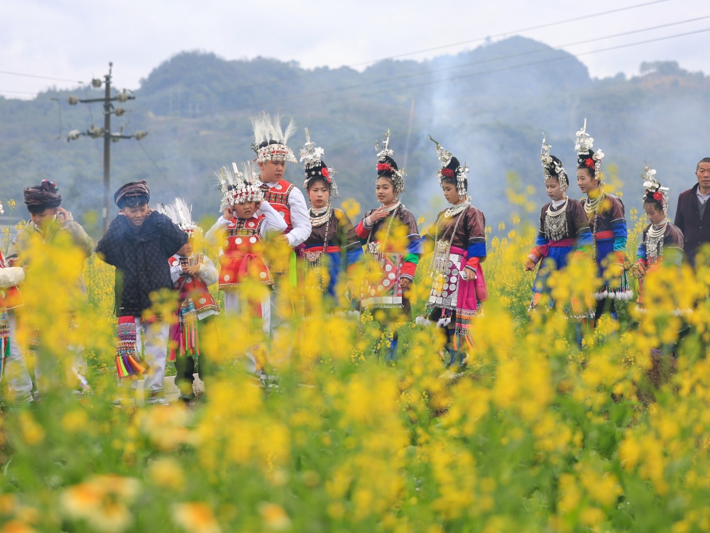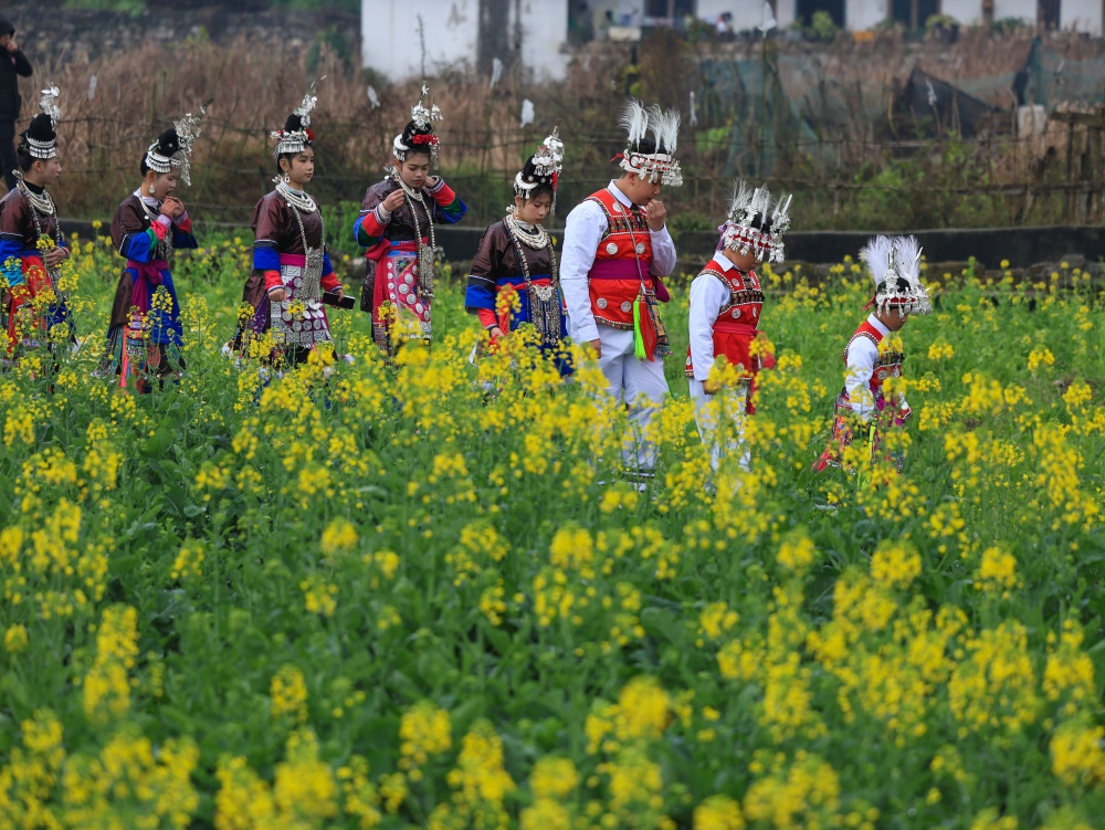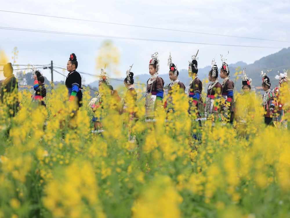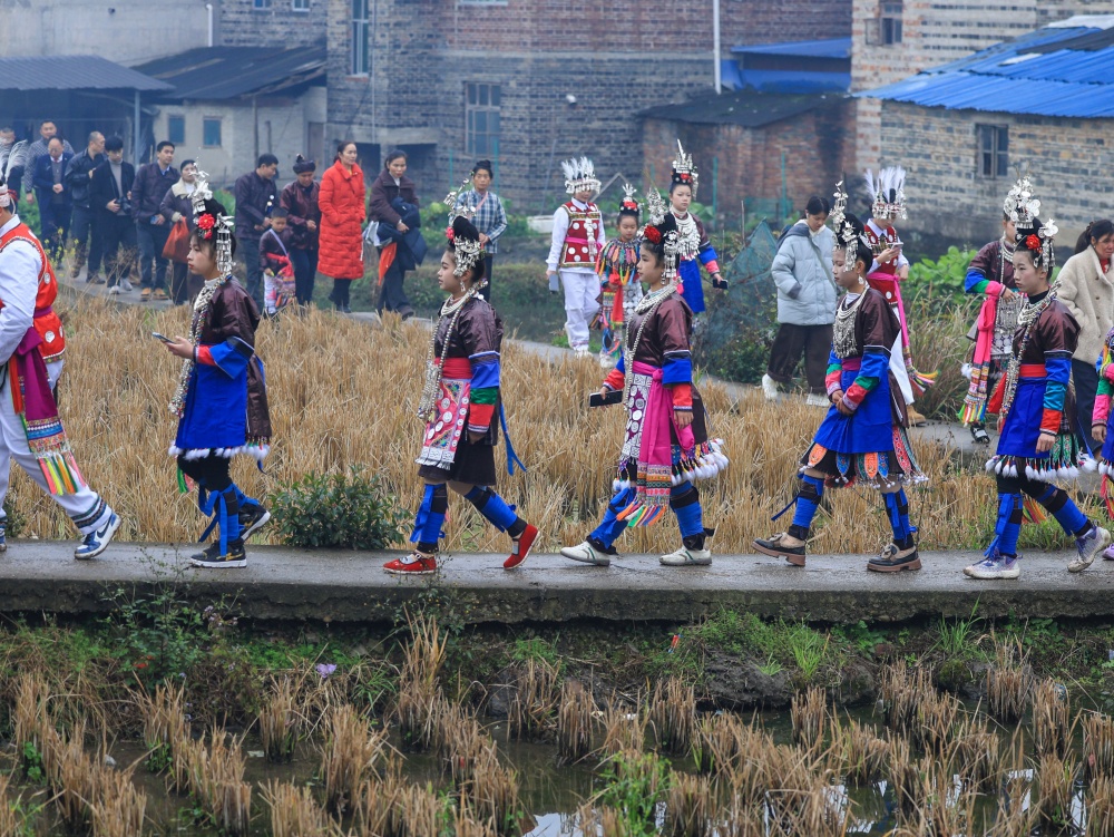 2月17日(农历大年初一),贵州省黔东南苗族侗族自治州从江县贯洞镇龙图侗寨,侗族同胞身着节日盛装,欢聚一堂,开展“赶略”民俗活动。侗族群众通过巡游、吹芦笙、鸣铁炮、唱侗歌等形式,共庆新春佳节。
