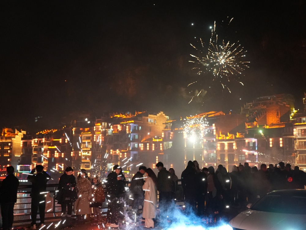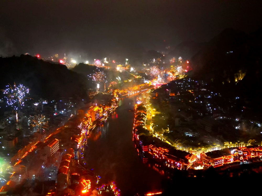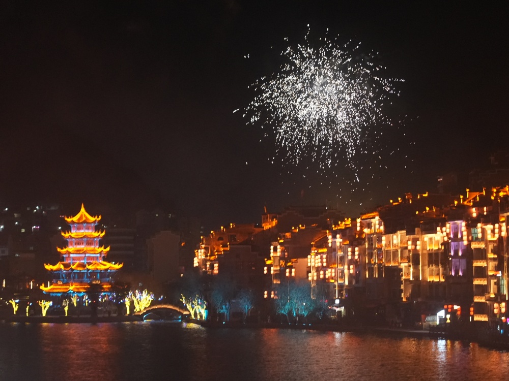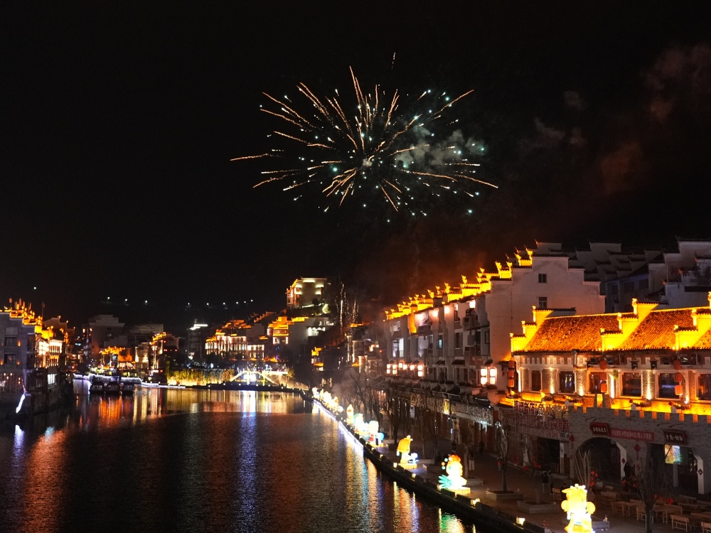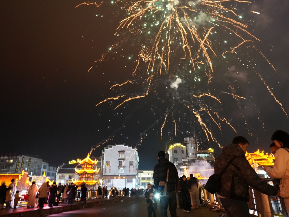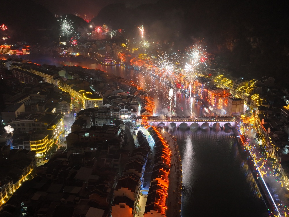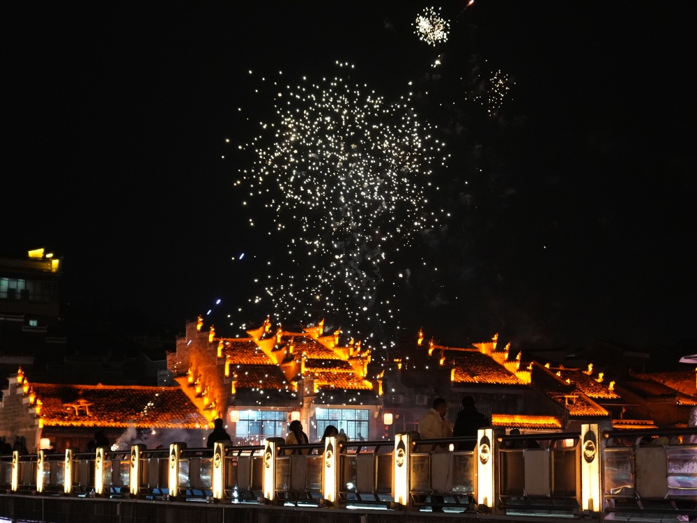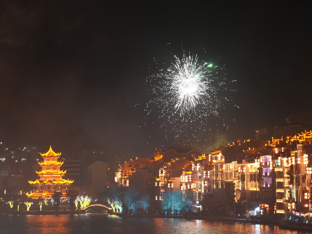 镇远古城除夕夜:烟花璀璨迎新春 八方游客共团圆
