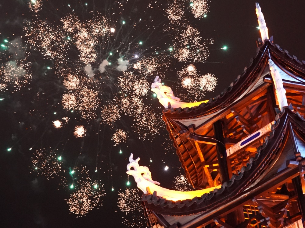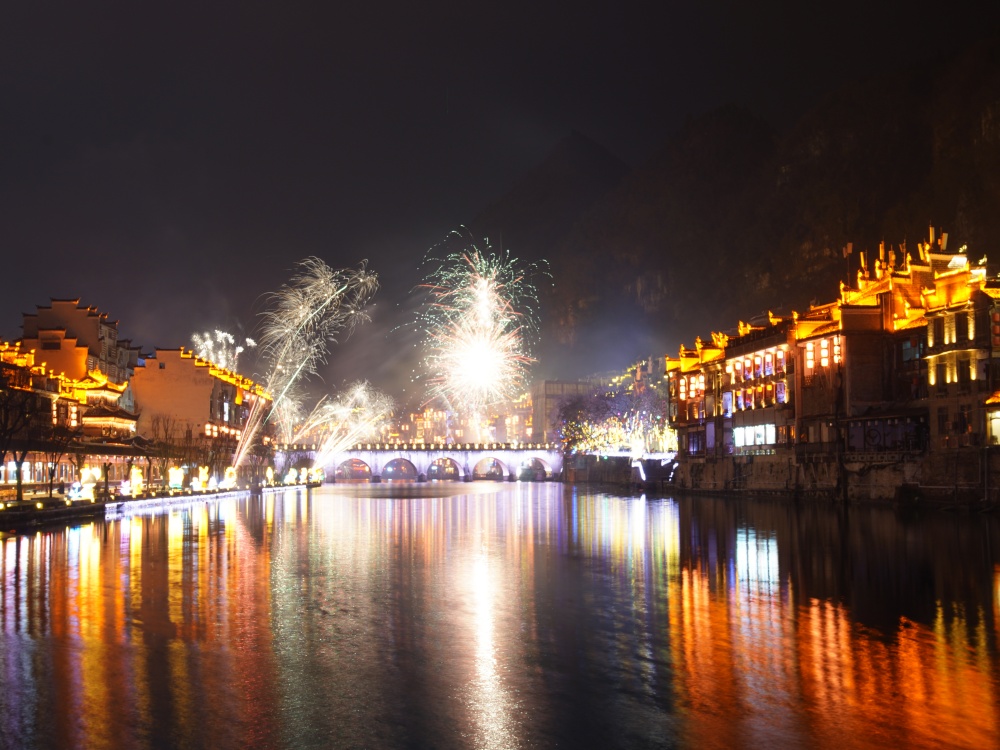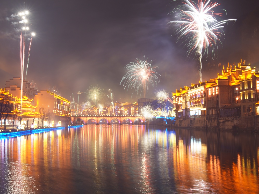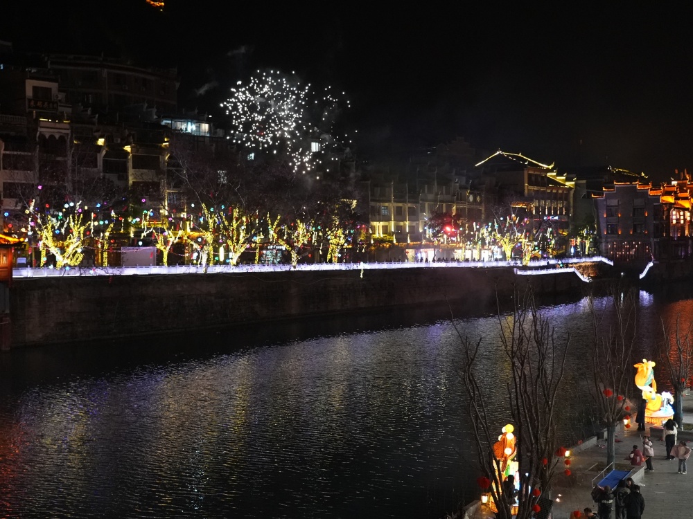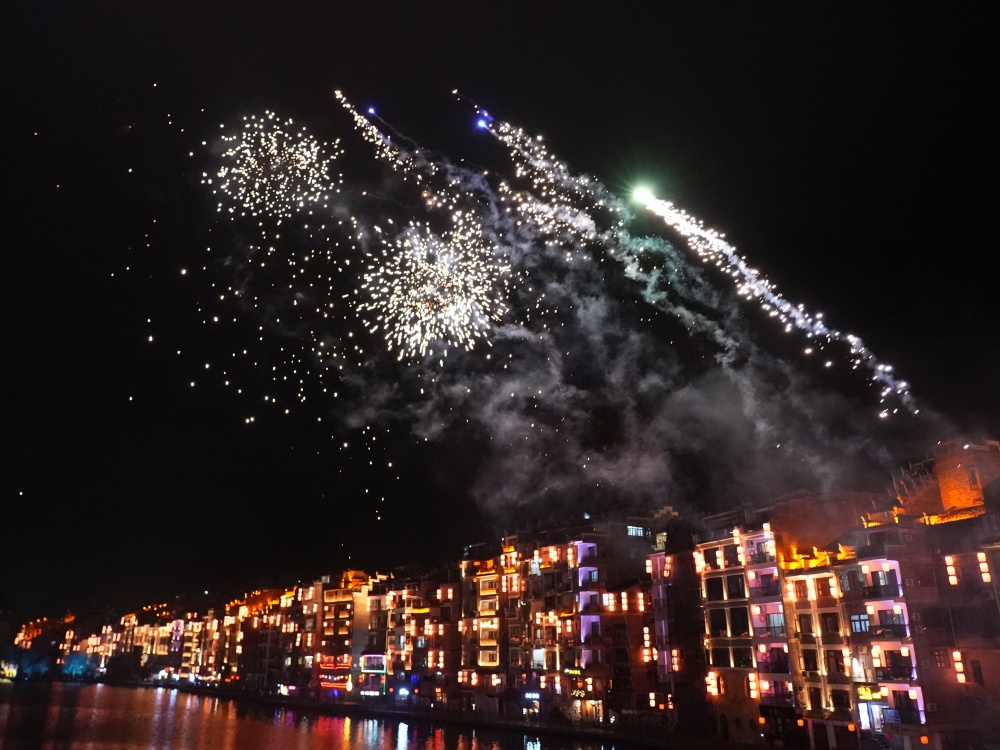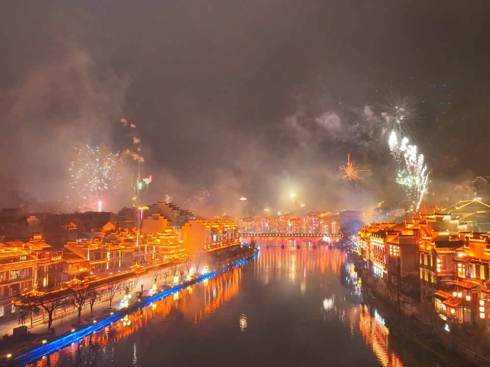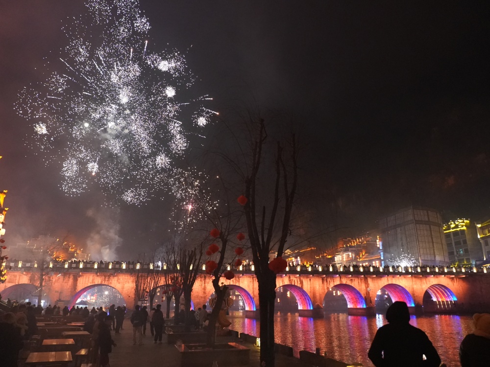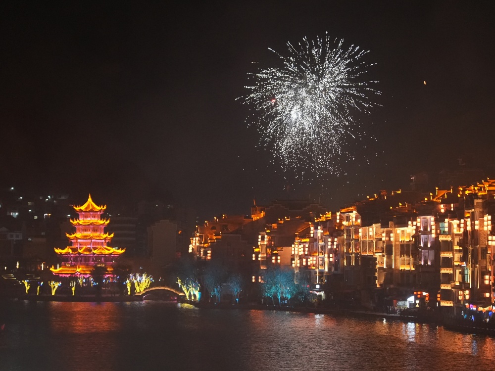 镇远古城除夕夜:烟花璀璨迎新春 八方游客共团圆