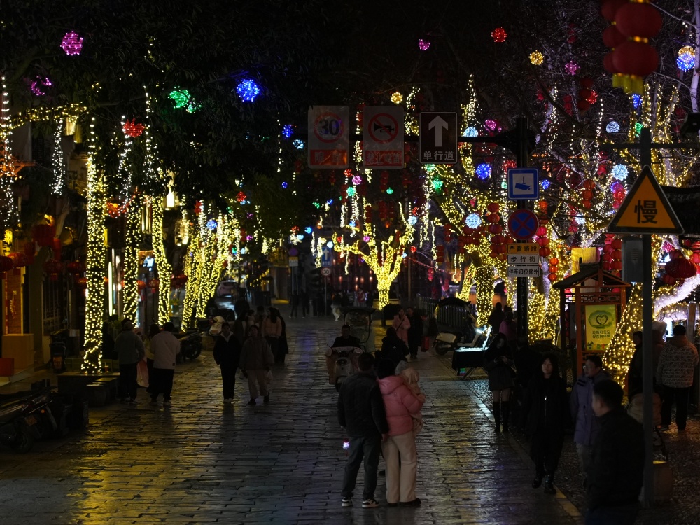 绚丽的烟花照亮夜空,欢声笑语回荡街巷,“新年快乐!”的祝福声此起彼伏,古城以独特的魅力为游客们呈现了一场难忘的跨年盛宴。