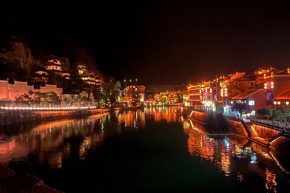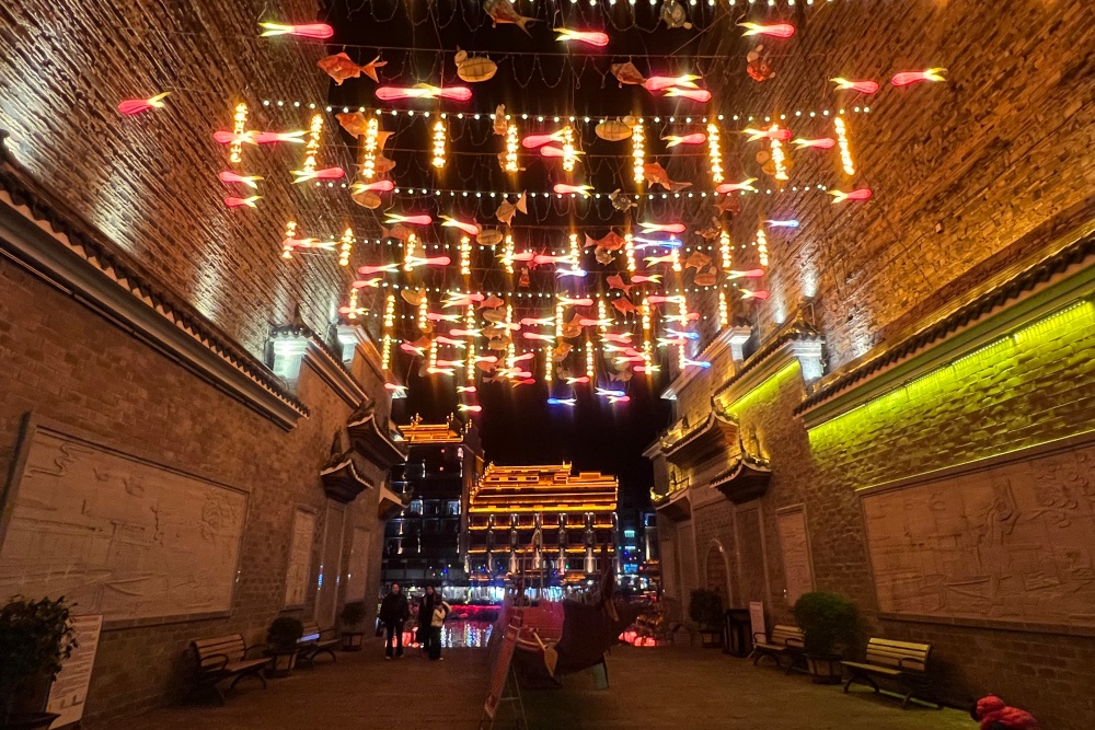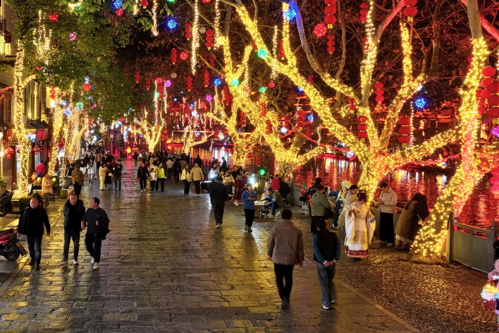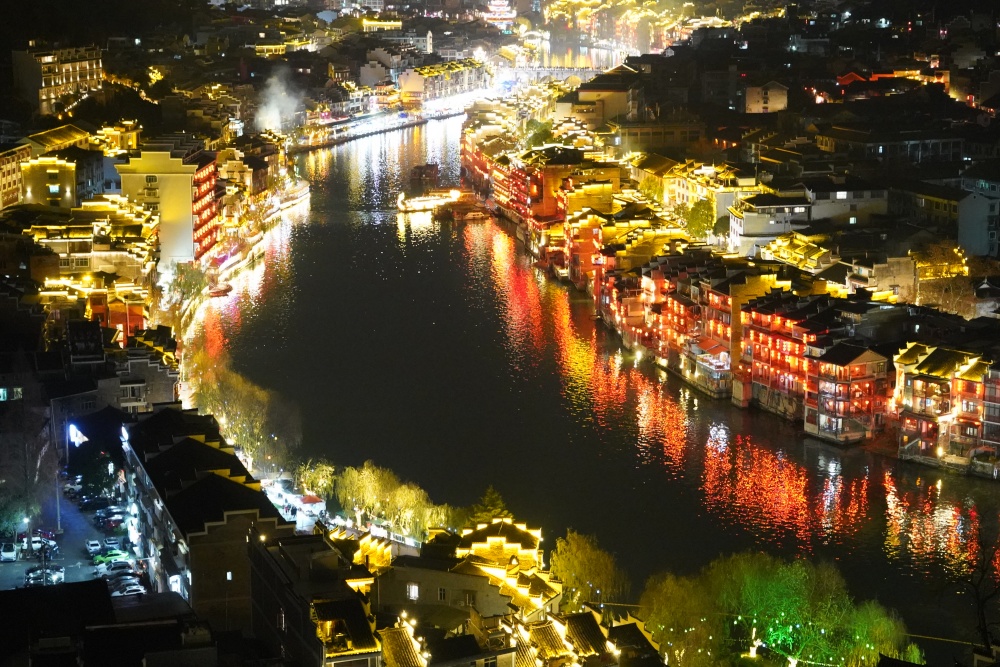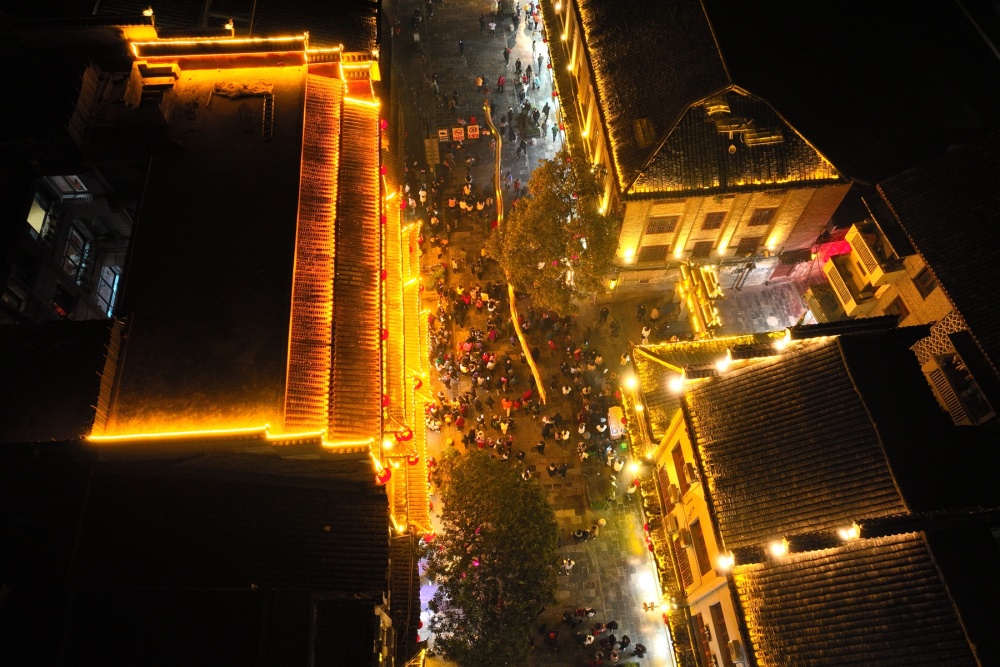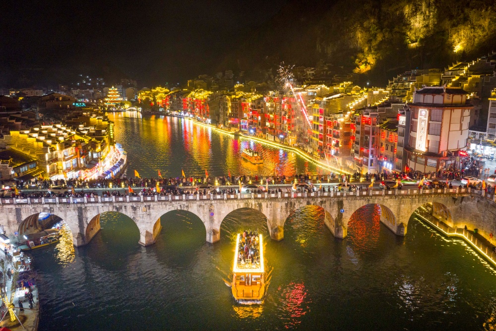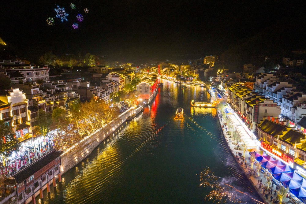 新年里,处处洋溢着喜庆祥和的节日氛围。青石板路上,大红灯笼与古朴建筑相映成趣;舞阳河畔,倒映着两岸的璀璨灯火。这座依山傍水的千年古镇,正以最具仪式感的方式迎接新春的到来。