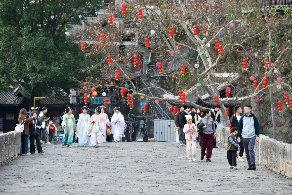 "第一次来黔东南镇远过年,这里历史底蕴深厚,风景如画,春节活动丰富,氛围温馨又热闹。这是一次很特别的新年体验,我们都很喜欢。"来自苏州的纪先生说道。