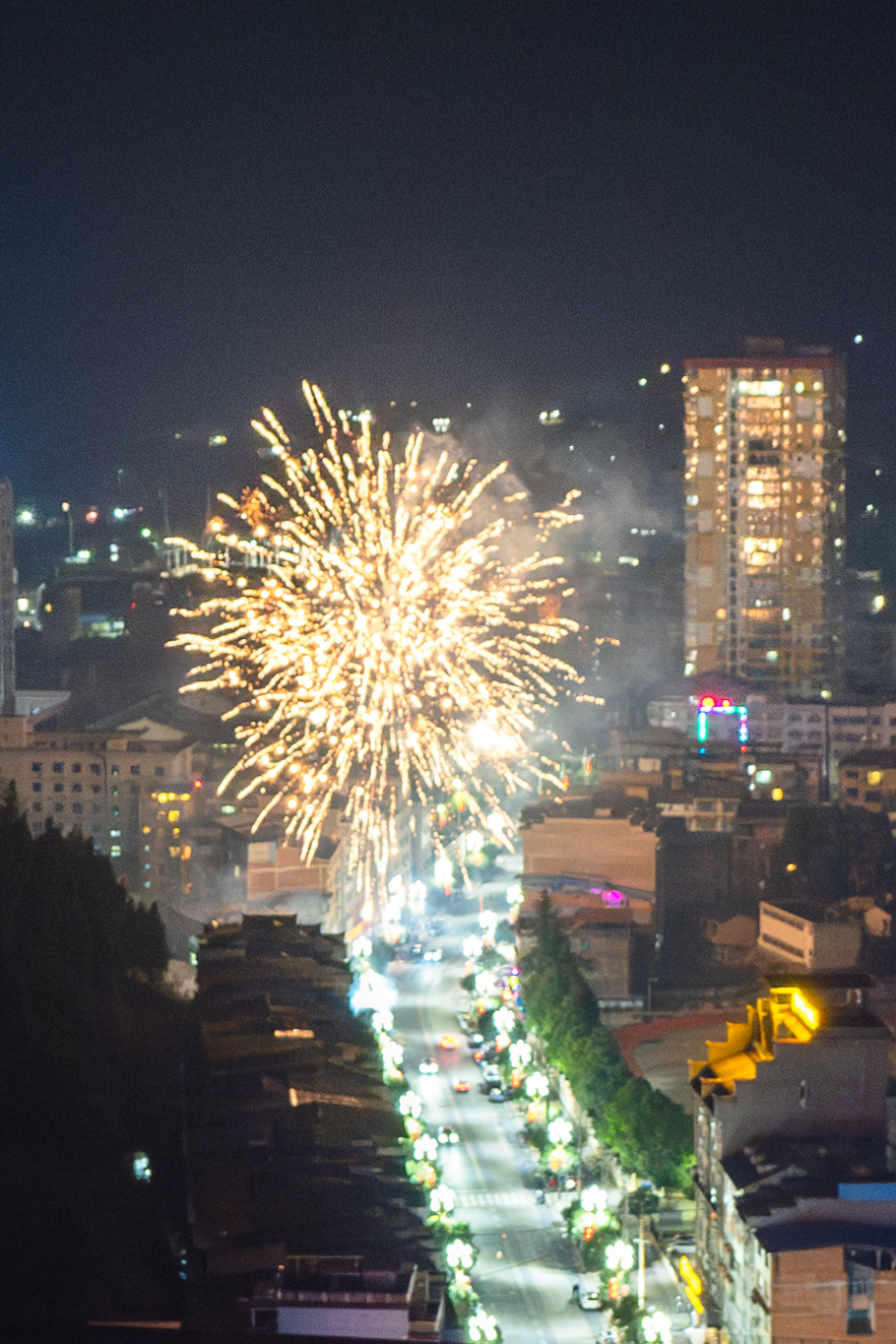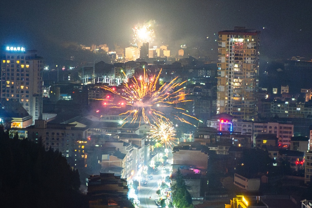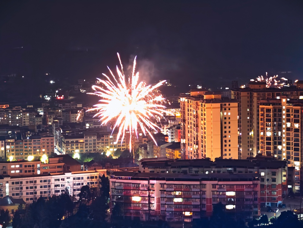 零点开始,灯火璀璨的㵲水街道渐渐被新春热闹氛围包裹,随着一声声清脆的鸣响,一簇簇烟花直冲云霄,瞬间炸开成漫天星火,金红交织、银白点缀,似繁花缀满墨色天幕,又似流星倾泻而下。又如牡丹舒展、或如星河倾泻,绚烂光影倒映在街巷楼宇间,将城区夜景勾勒得如梦似幻。市民们驻足观赏,手机镜头追着光影,定格下这转瞬即逝的美好。