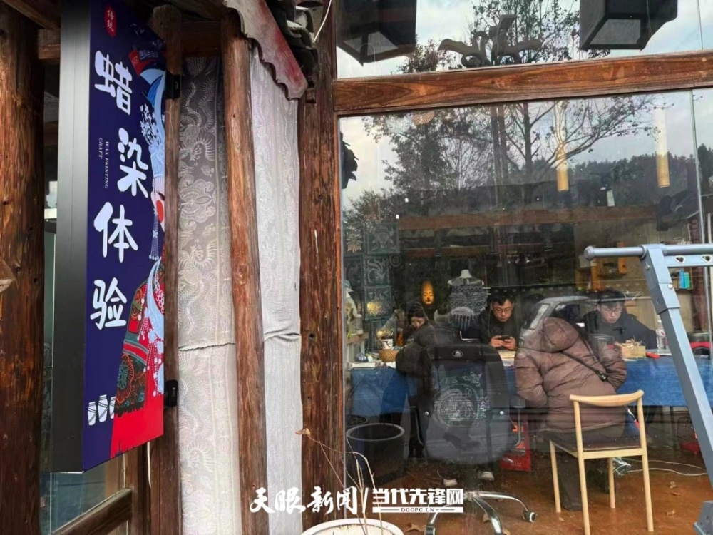 “蜡刀要垂直拿,手腕稳住,慢慢走线……”大年初四下午,凯里苗侗风情园的蜡染体验工坊里,一家蜡染体验店负责人王老师正握着一位游客的手,耐心指导她在土布上勾勒图案。蜡刀蘸着温热的蜂蜡缓缓游走,蝴蝶纹渐渐成形。