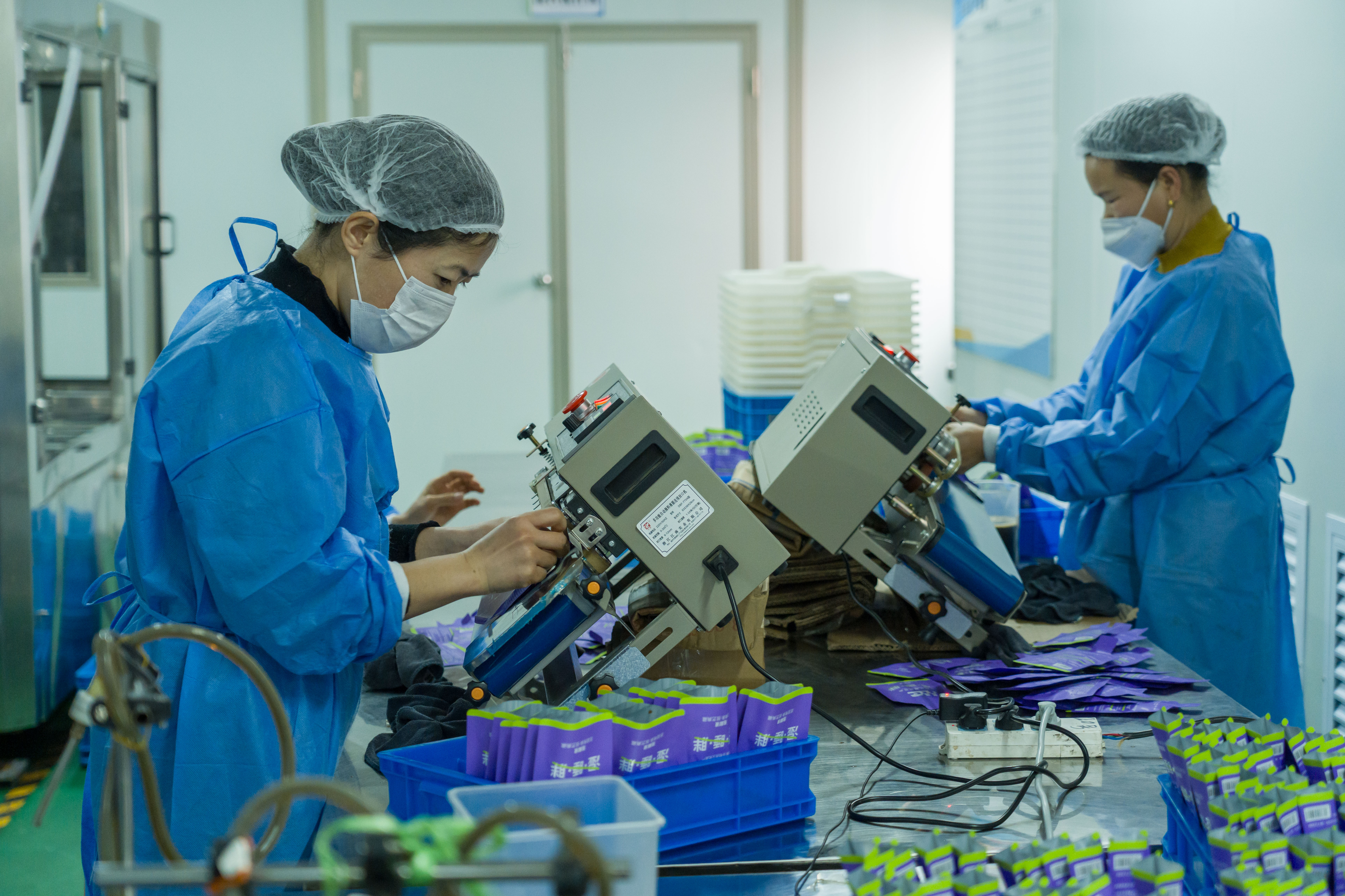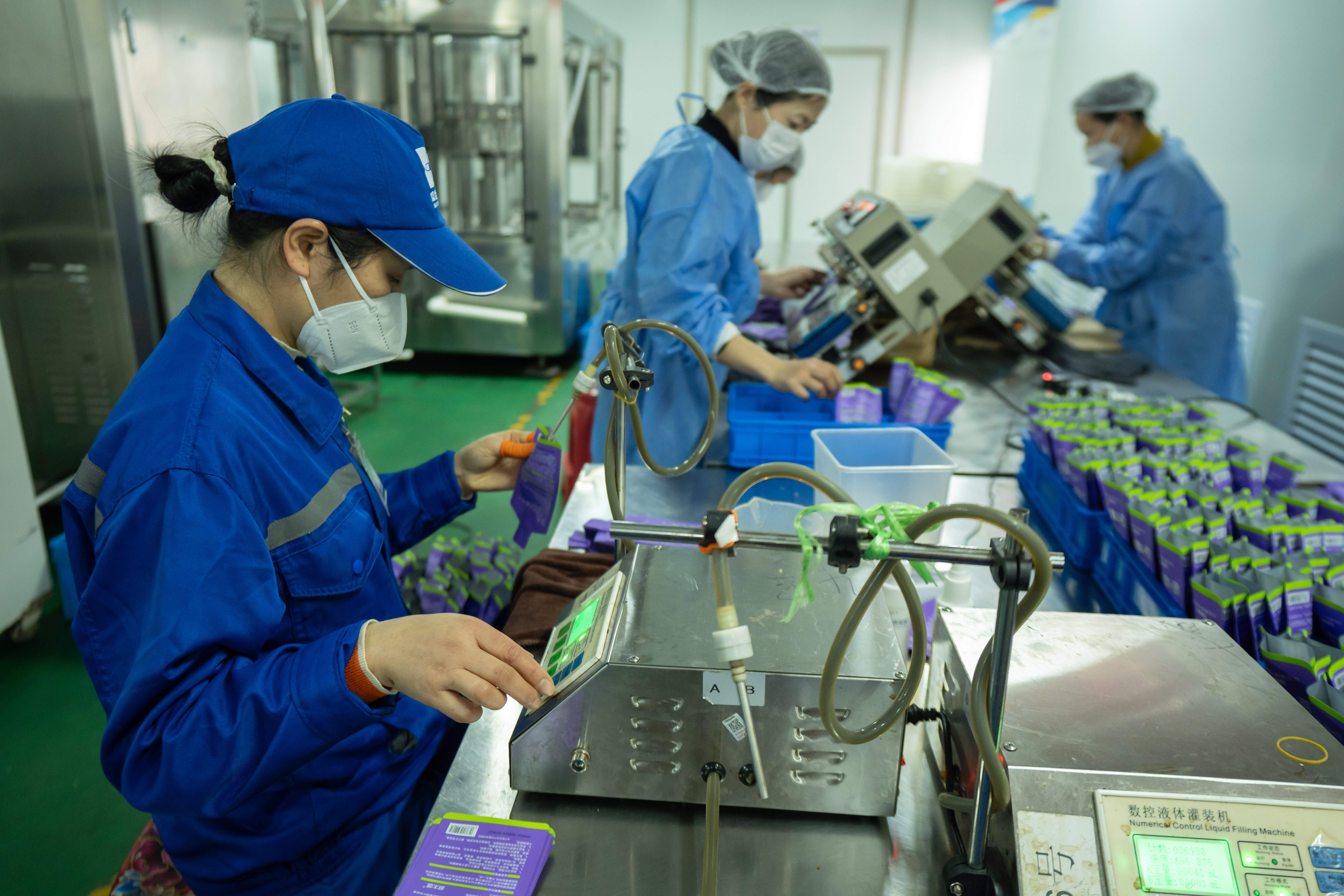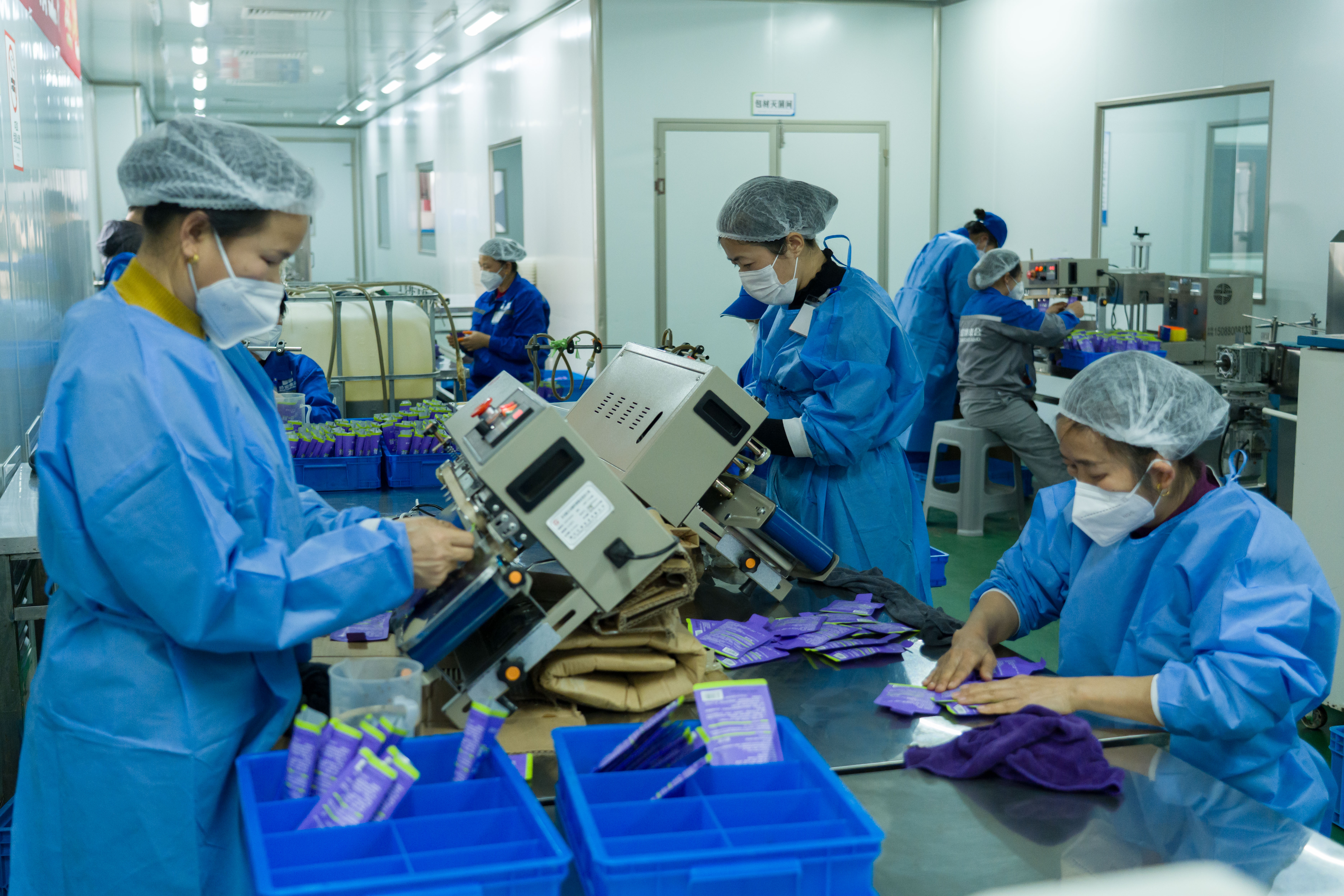 2月24日,工人在贵州省黔东南苗族侗族自治州从江县一家医药科技企业生产车间赶制订单产品。