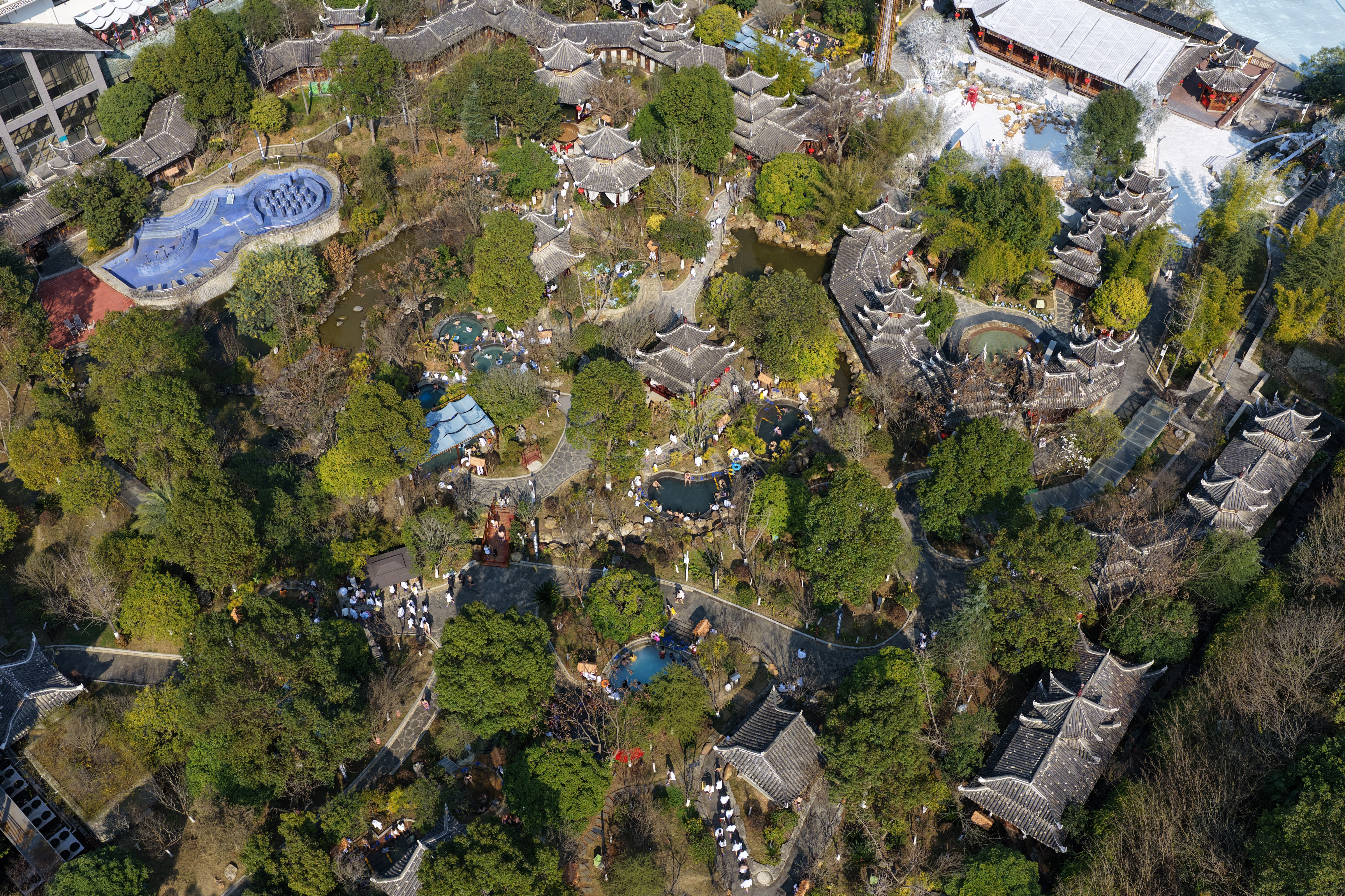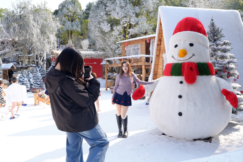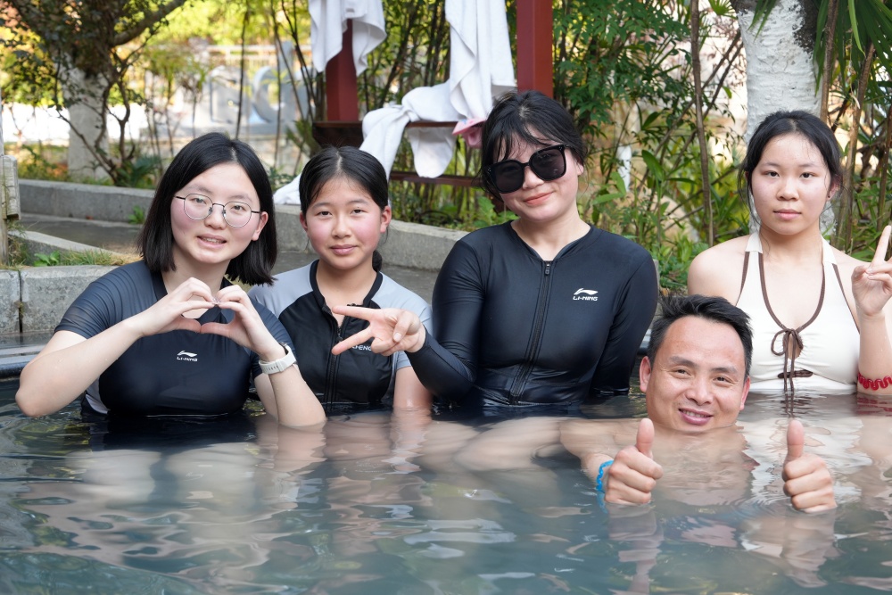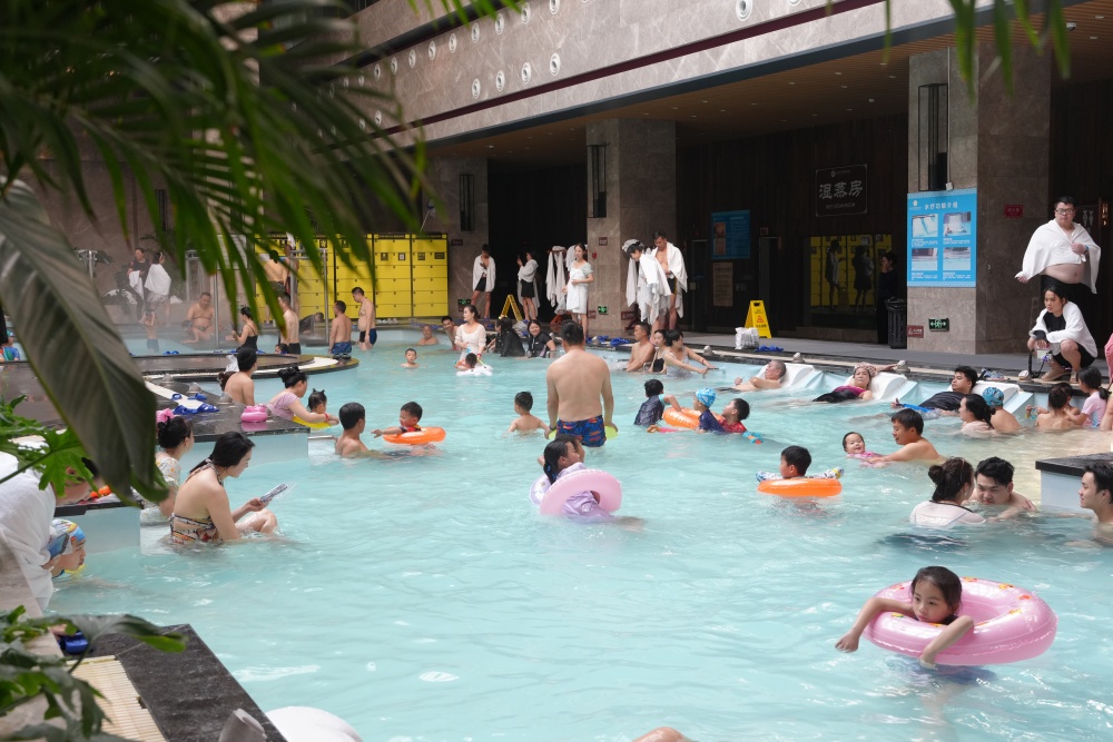 作为省内知名康养温泉,景区打造苗药养生池、特色功能池等多元泡浴体验,兼顾家庭亲子、中老年康养与年轻群体打卡需求,不少游客携全家老小沉浸式感受氡硫温泉的温润舒适。人造雪景与装饰交相辉映,泡温泉更成网红打卡场景,朋友圈、短视频平台刷屏不断。