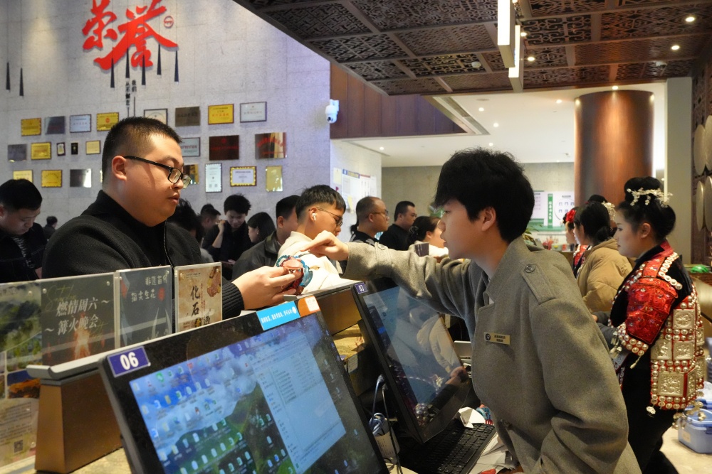 本次春节假期,温泉小镇精心策划推出全天候民俗文化盛宴。乡村赶场、趣味互动游戏、苗侗民族歌舞等活动轮番上演;篝火晚会、非遗文化互动体验、特色美食市集同步对外开放,让游客深度沉浸式体验民族文化魅力。大年初二,央视春晚《吉量》节目中的 “村 T” 少年团队亲临小镇,与广大游客开展互动打卡活动,将节日氛围推向热潮,进一步提升了景区的品牌知名度与市场传播力。