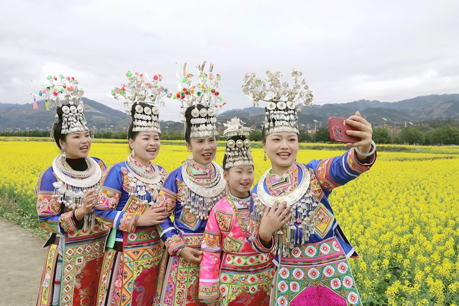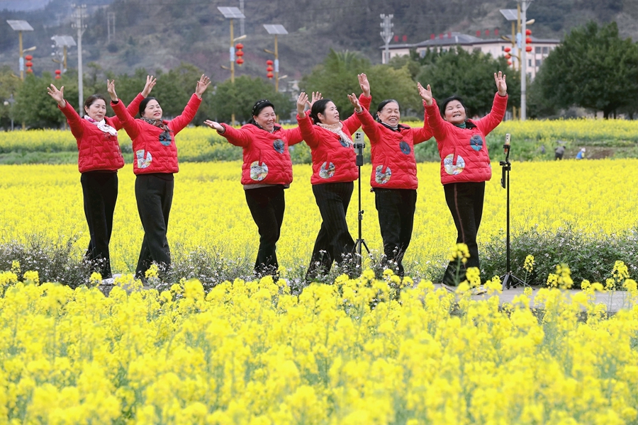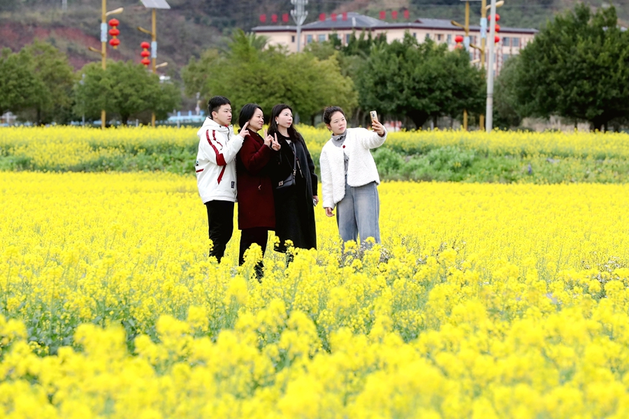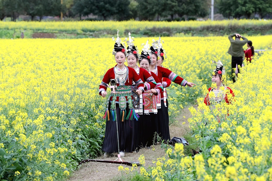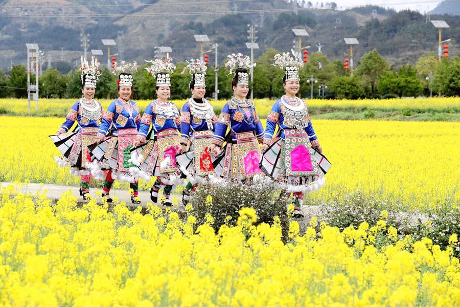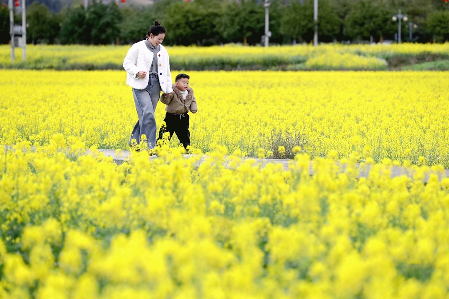 近年来,贵州省黔东南苗族侗族自治州榕江县立足生态优势,以花为媒发展农旅融合产业,把农田变为景区,把摊位、特色美食等搬到油菜花田埂,旅游“小火车”穿梭花海间,金灿灿的油菜花海吸引众多游人前来赏花游玩,让春日美景成为推动乡村振兴、带动群众增收的“美丽经济”。
