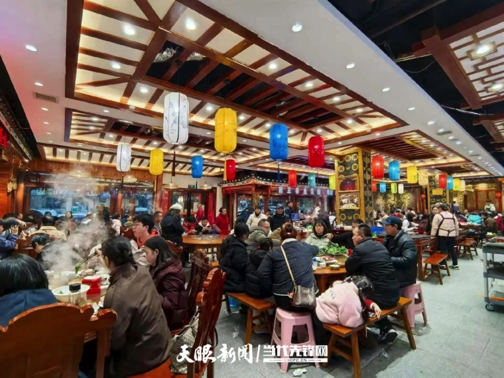 2月27日,傍晚6点半,天色渐暗,凯里市苗王谷酸汤店的灯火格外明亮。