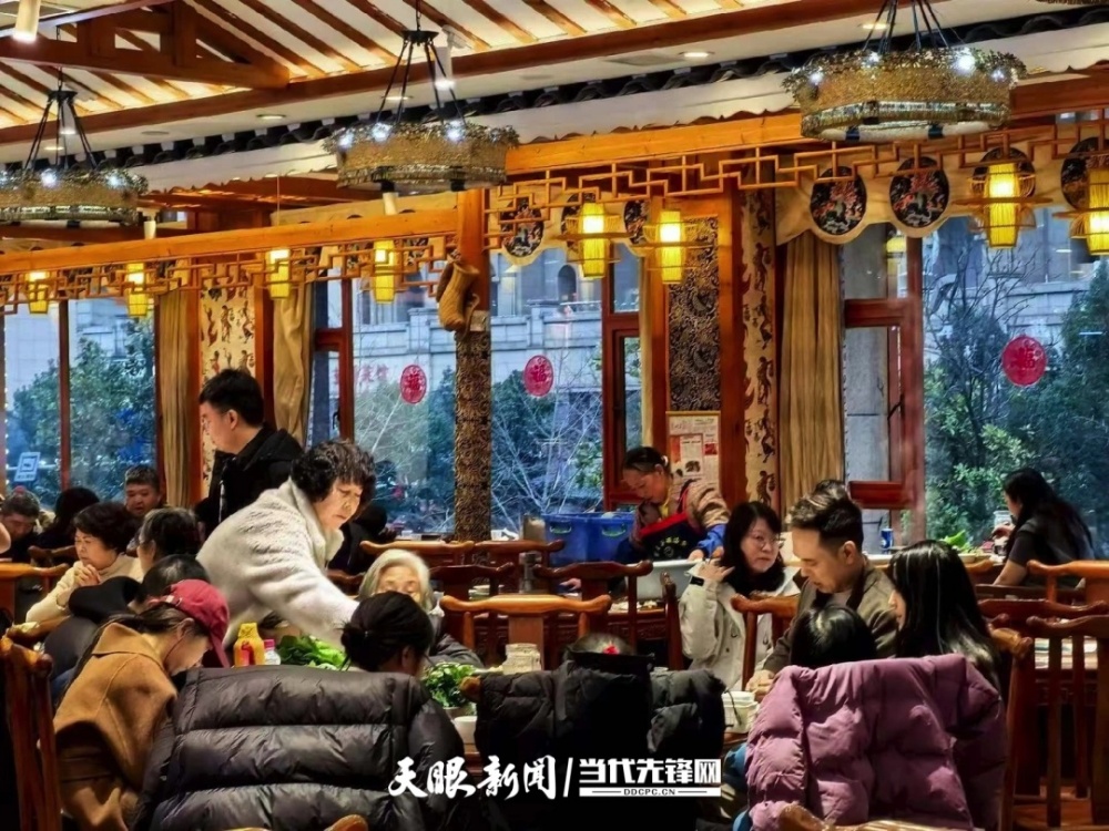 这家将美食与文化完美融合的特色店铺,不仅留住了食客的胃,也带动了周边村民的增收。聂卫东介绍,过年期间店内员工达到70多名,每天工资300元,还从周边村子请了10多个零工专门负责洗碗洗菜。“村里来的大姐们干得可起劲了,她们顺便把自家种的蔬菜也拿来卖给我们,新鲜又实惠。”他说,这种“店村联动”的模式,既解决了节日期间用工短缺的问题,也让村民在家门口挣到了钱。