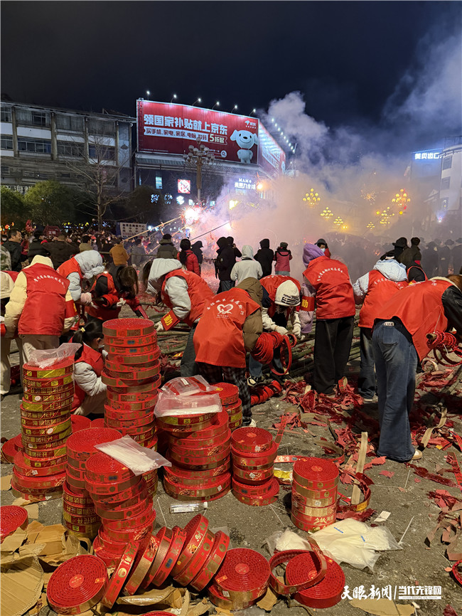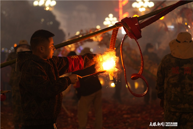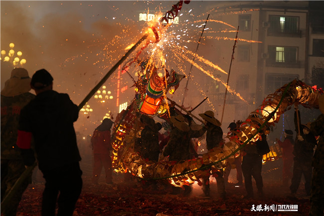 2月28日,农历正月十一晚,施秉县城灯火璀璨,人声鼎沸。一年一度的龙灯展演重头戏——“炸龙”民俗精彩上演。烟火升腾、鼓声震天间,当地各族群众以最热烈、最传统的方式,祈愿风调雨顺、五谷丰登。