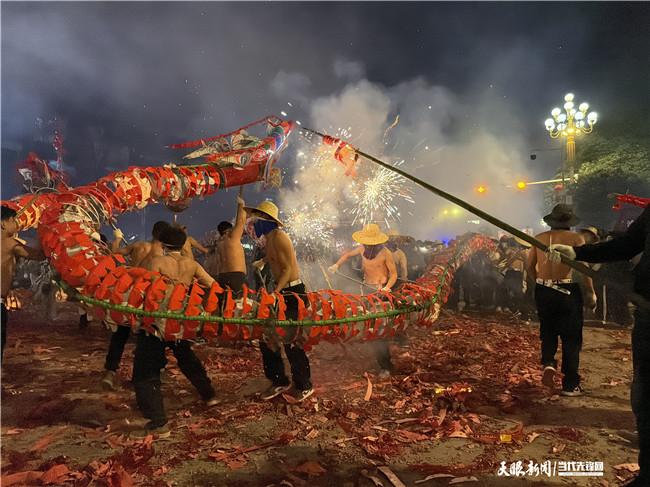 独特的民俗也吸引了外地游客前来体验。“我来自河南,第一次来看炸龙,感觉非常热闹,有过年的氛围,寓意也很好。昨天还去抢了龙身上的红纸,据说可以带来好运,很震撼!”游客袁志新兴奋地说。
