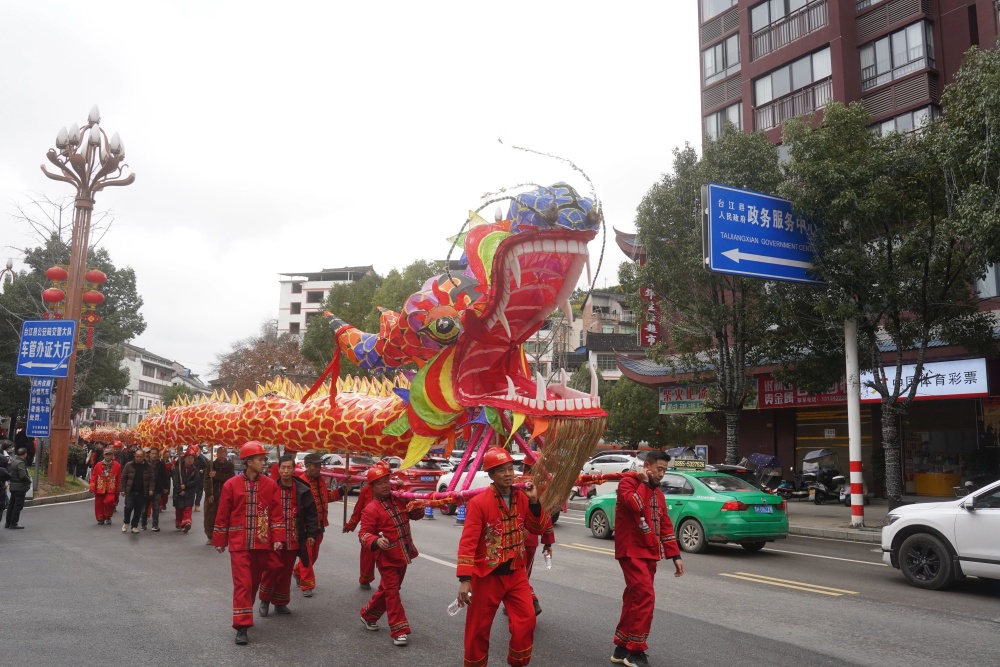 3月2日(农历正月十四),贵州省黔东南苗族侗族自治州台江县迎来了一场别开生面的民俗盛宴。一条长达108米的巨型长龙在县城主干道惊艳亮相,气势磅礴的扛龙队伍绵延百米,吸引了诸多市民和游客夹道观赏。