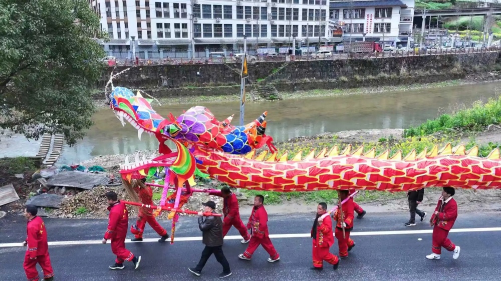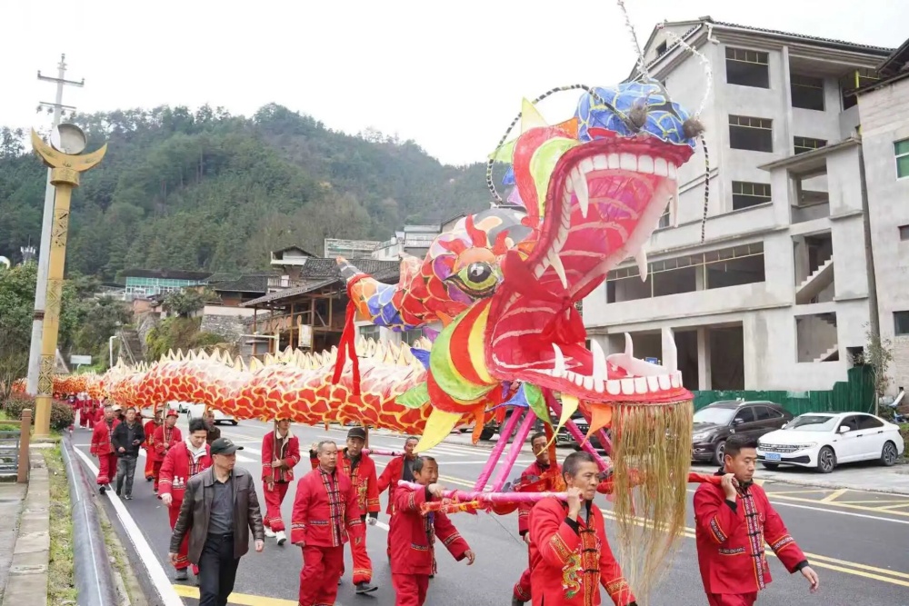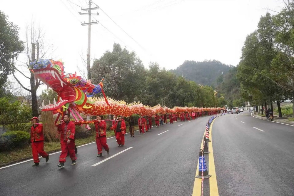 这条由当地能工巧匠精心扎制的长龙,龙头高耸,龙目炯炯有神,龙身由数十节连接而成,总长达108米,需要近百名身强力壮的舞龙手合力抬,栩栩如生的姿态赢得了围观群众的阵阵喝彩。