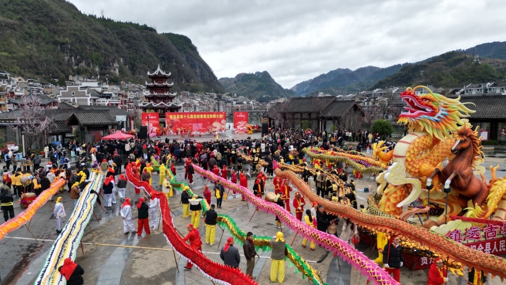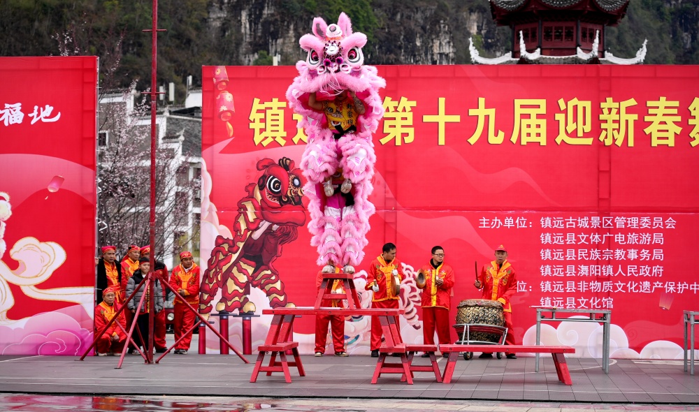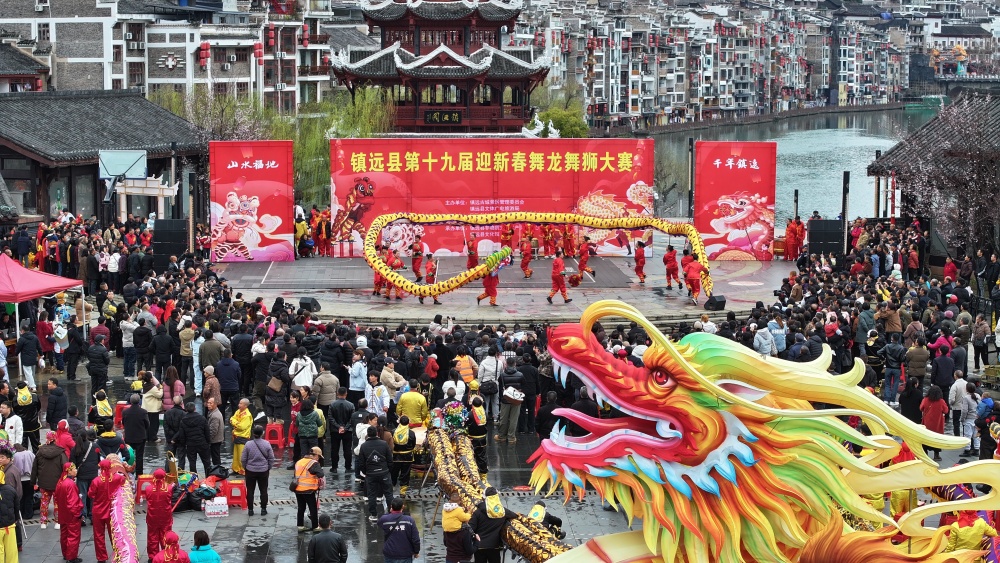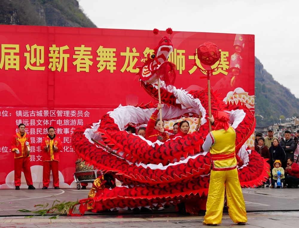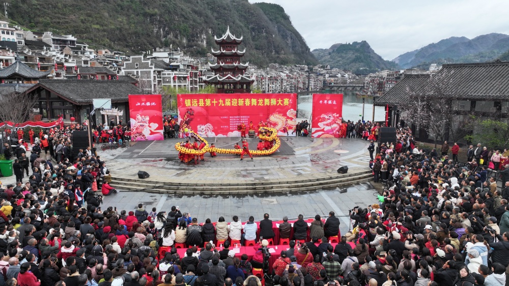 锣鼓喧天辞旧岁,龙腾狮跃闹元宵。3月2日,农历正月十四,镇远古城文化园广场上人声鼎沸、热闹非凡,镇远县第十九届迎新春舞龙舞狮大赛在此欢闹开赛。来自全县各社区的龙狮队伍齐聚一堂,以精湛的技艺和饱满的热情,为现场观众献上了一场极具地方特色的非遗民俗文化盛宴。