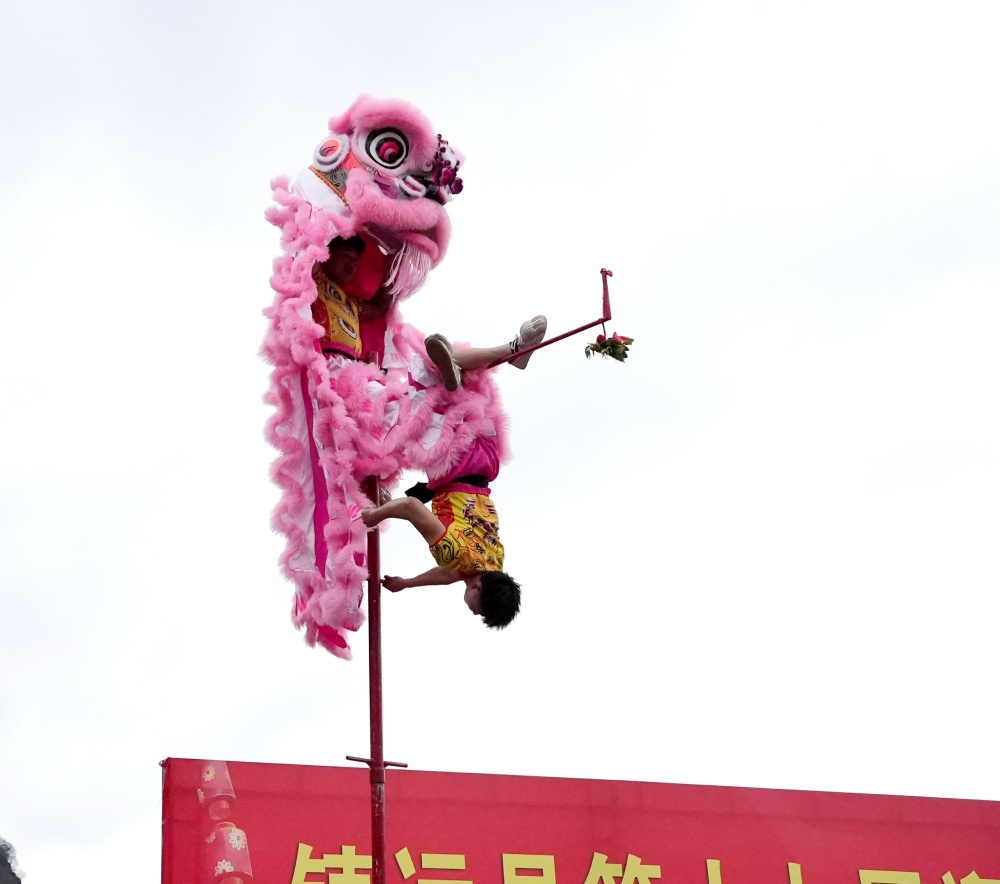顺城社区舞狮队员唐嘉豪介绍了今年舞狮的创新之处:“今年的舞狮表演在去年基础上,对动作细节进行了创新,尤其在爬高杆采青环节新增倒挂金钩高难度动作,惊险利落、气势十足,希望通过我们的表演展现出醒狮矫健灵动、勇攀高峰的风采。”