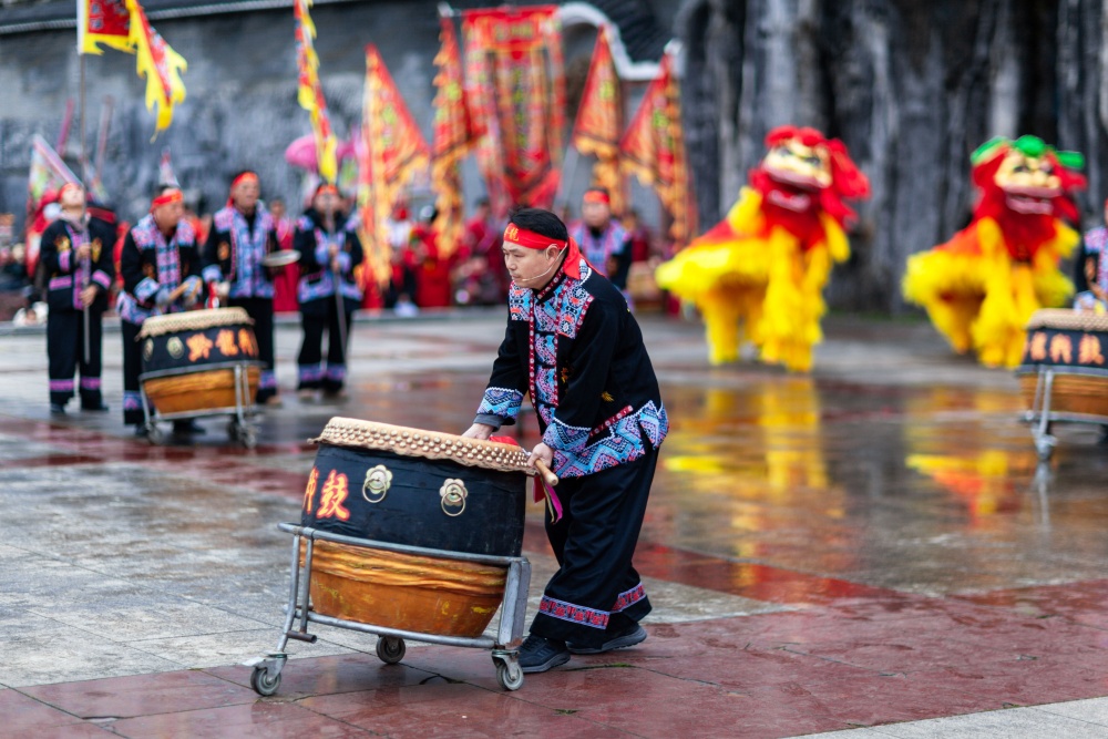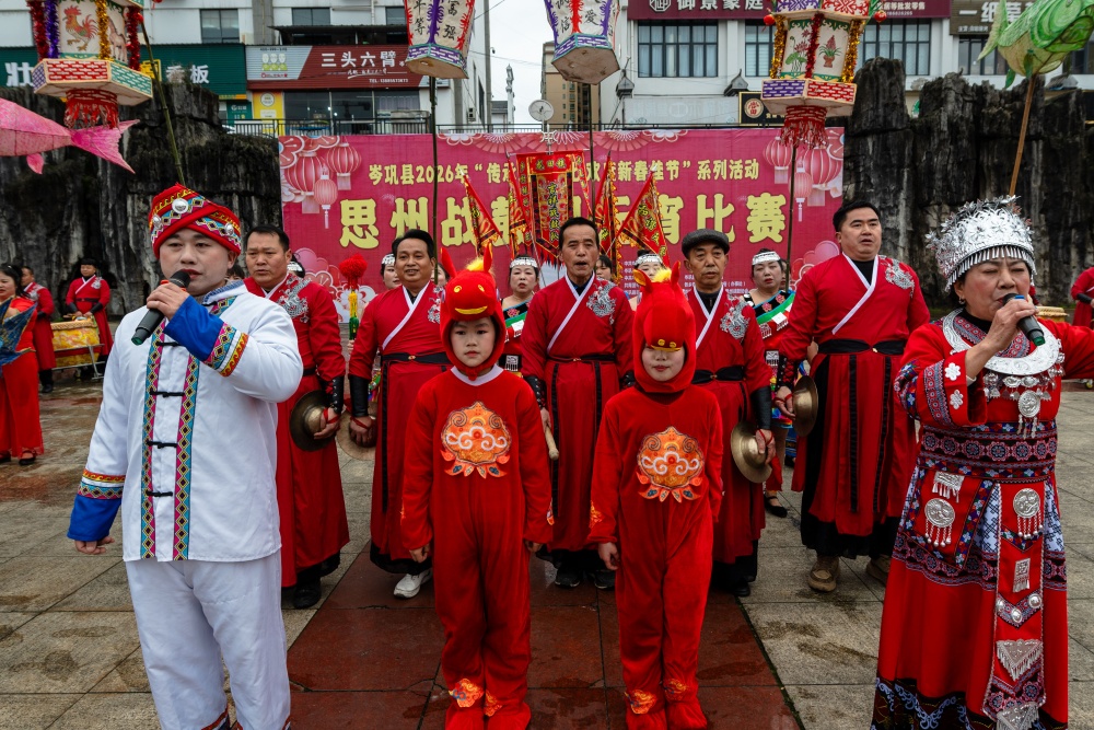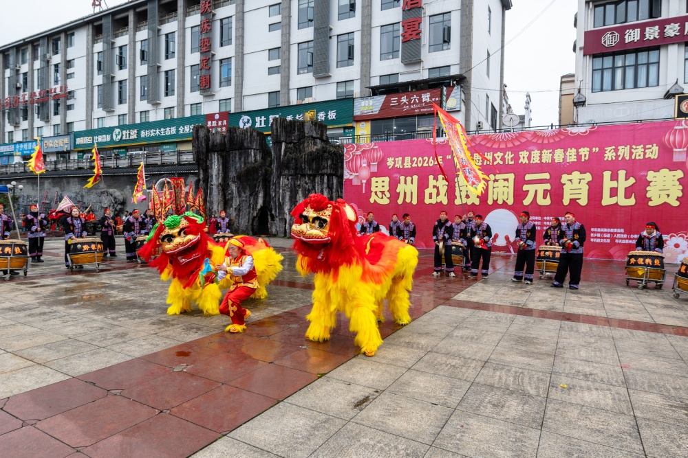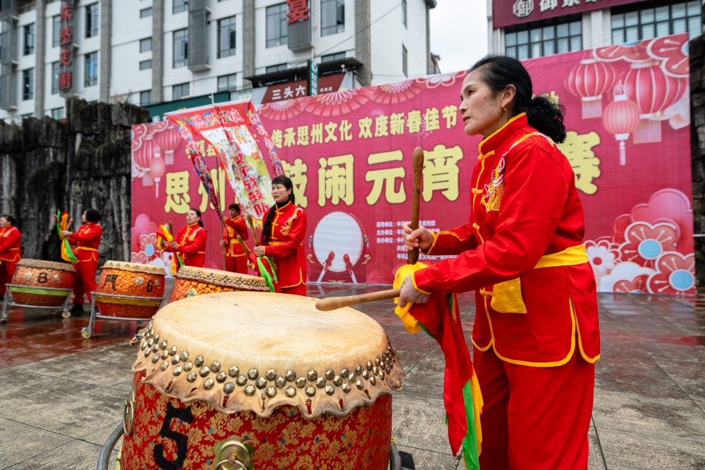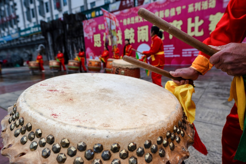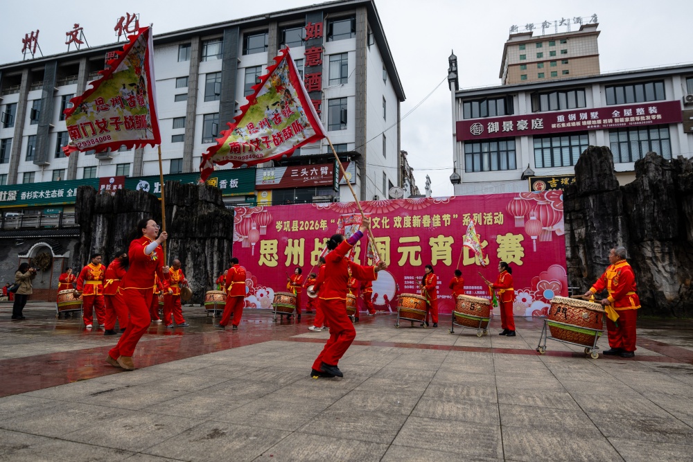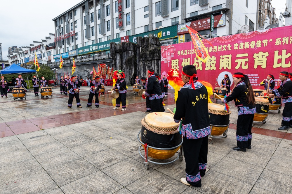 岑巩县:思州战鼓斗鼓闹元宵 非遗声浪震㵲水