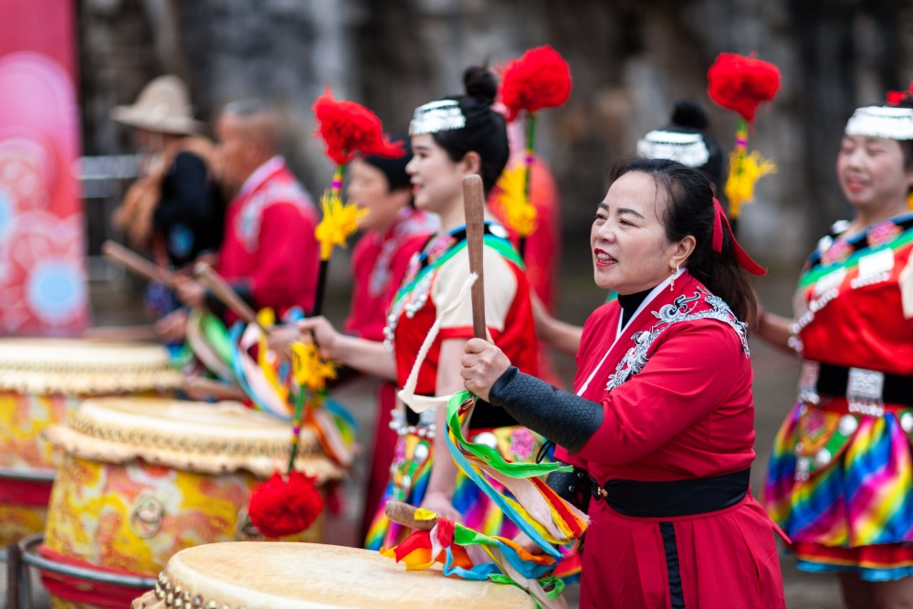 据了解,思州战鼓(夜郎战鼓)是岑巩各族群众共同创造的文化瑰宝,迄今已有 1000 多年历史,是贵州省非物质文化遗产代表性项目。它最早用于古代思州地区的军事操练和号令传递,随着时代变迁,逐渐演变为各族人民辟邪除灾、祈福纳祥的民俗文化活动,也是当地元宵佳节不可或缺的民俗活动,承载着思州人民的团结、勇敢与智慧。