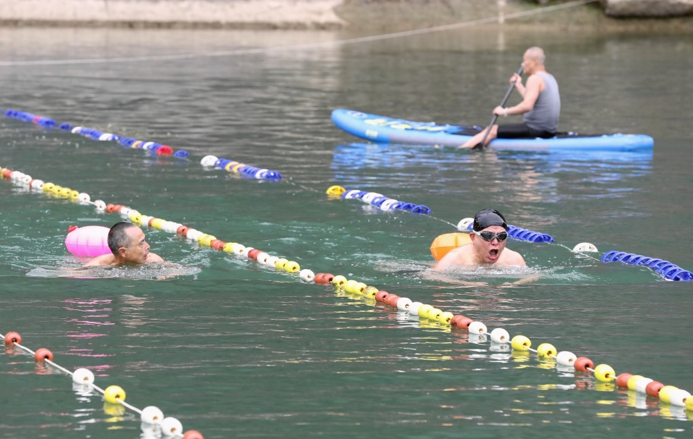 当日,在贵州省黔东南苗族侗族自治州榕江县古州镇都柳江的头塘村水域,由榕江县文体广电旅游局、榕江县体育训练中心、榕江县游泳协会联合举办的“贵州村泳2026年迎春游泳邀请赛”在古州镇头塘村举行。来自贵州、广东、河南、广西4省9个地区的游泳协会130余名游泳运动员参加100米蛙泳、100米自由泳和100米团体泳接力赛项目。