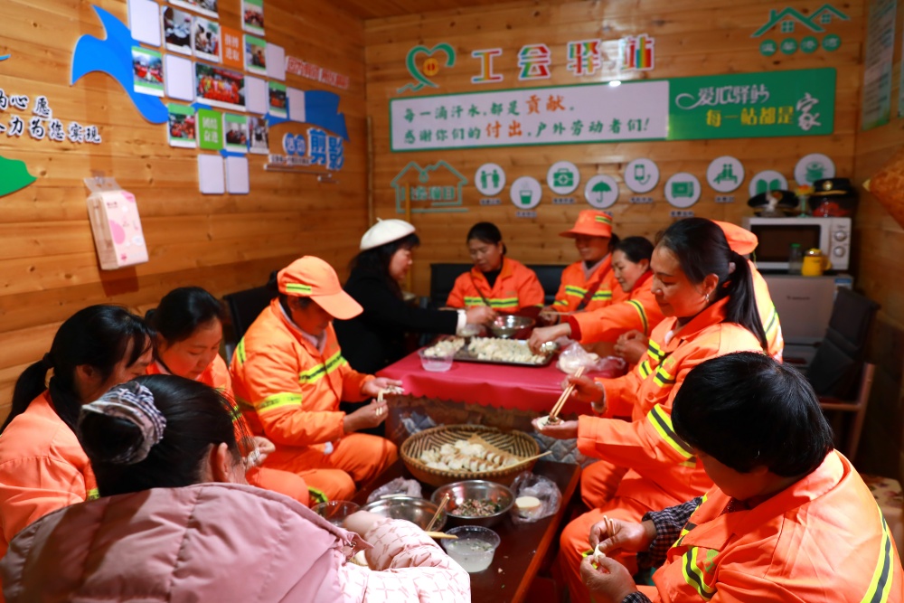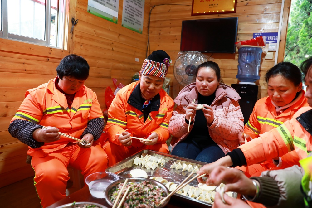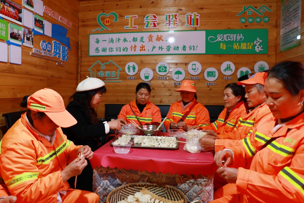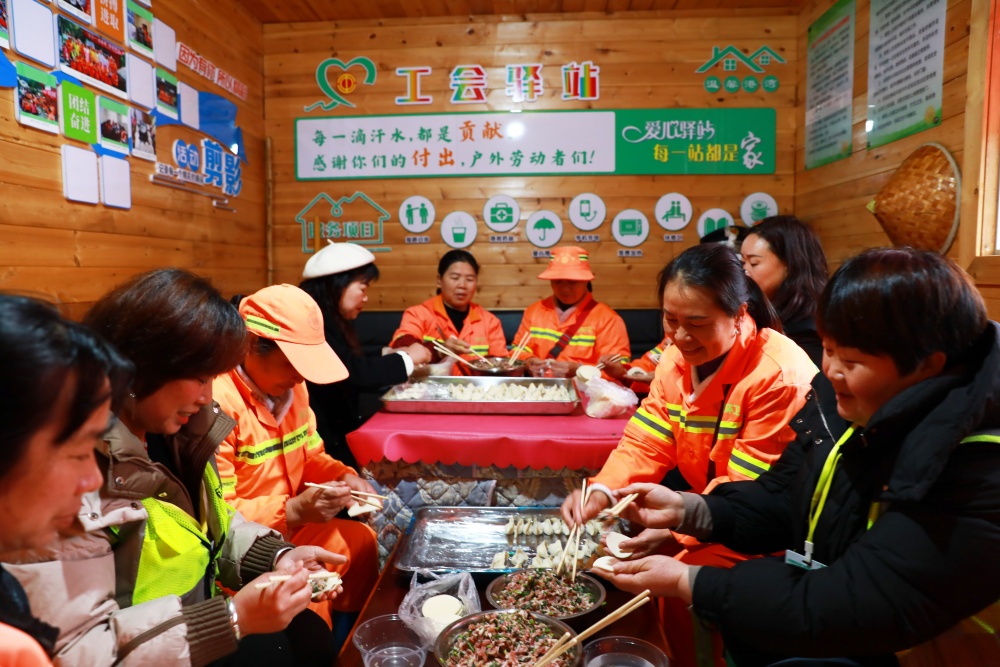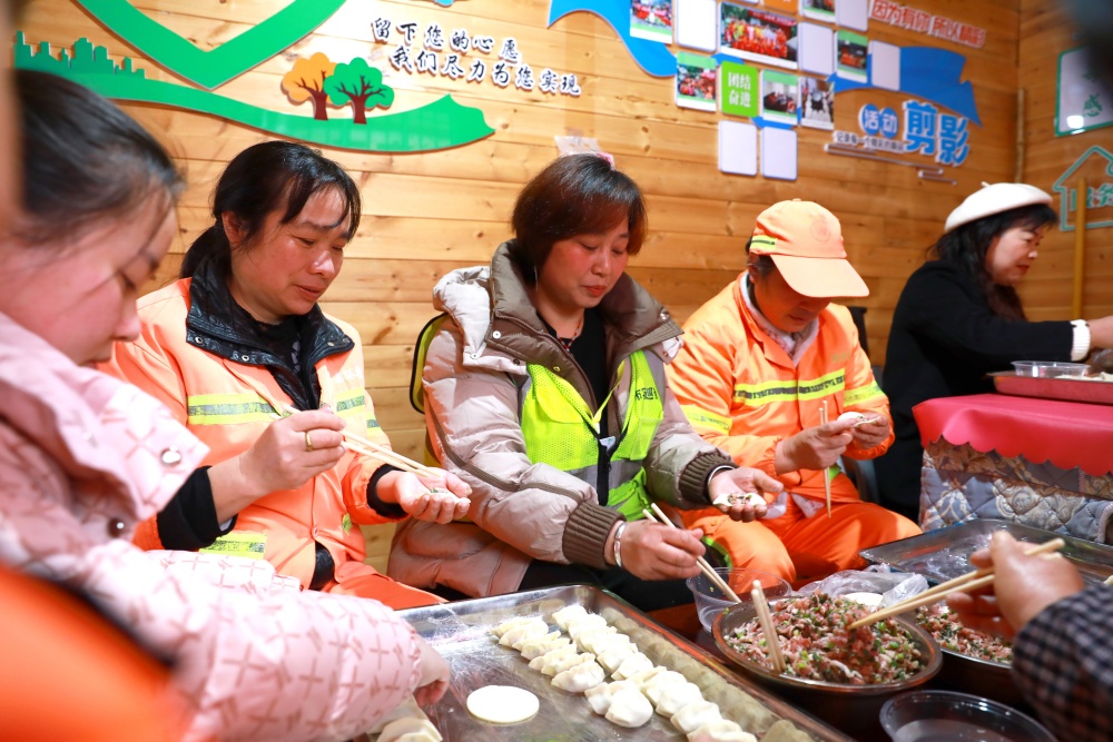 “平时工作大家各忙各的,感谢工会今天组织我们聚在这里包饺子,聊天,心里特别温暖,真切地感受到了‘娘家人’的关心。”环卫工人杨爱明的话语里满是激动。