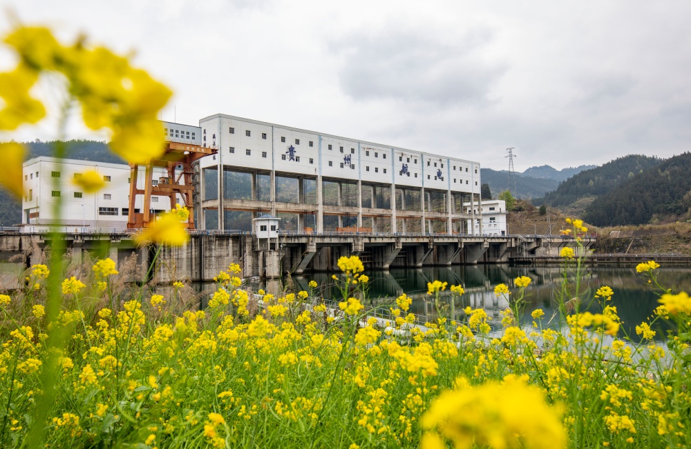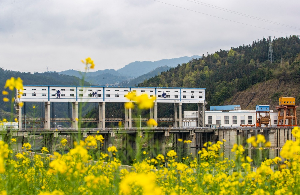 3月10日,位于都柳江从江县段的郎洞航电枢纽与盛开的油菜花交相辉映。