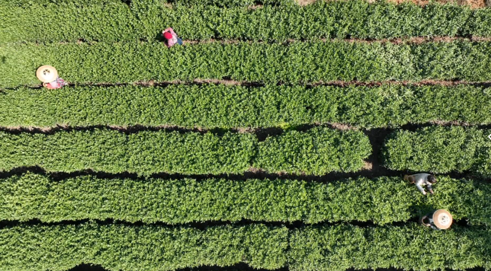 走进高屯街道、中潮镇等茶叶种植核心区,漫山茶树郁郁葱葱,芽尖簇拥、茶香四溢。茶农们穿梭于茶垄间,指尖翻飞、精准提采,以娴熟技艺抢收优质茶青,全力抢占春茶市场。春茶采摘高峰期,全县日均吸纳采茶务工人员9万人次,采茶工日均收入达130至160元,家门口的茶山成了群众增收的“聚宝盆”。