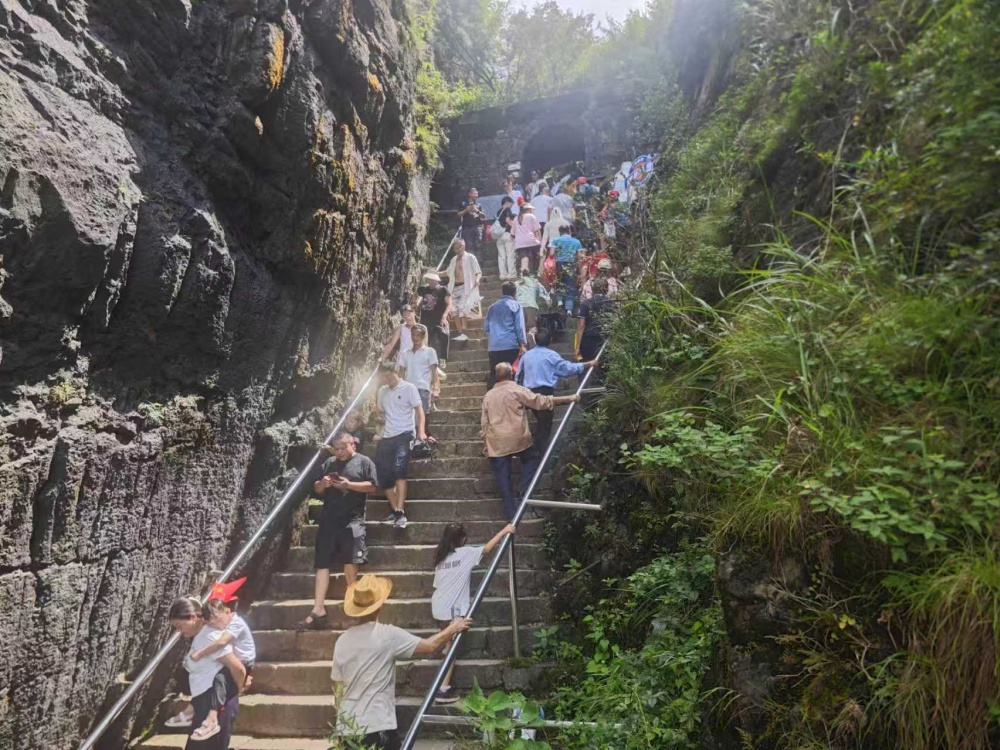 来自外地的张女士行至“天然图画”景点时,不禁连连点赞:“看惯了城市里的‘钢铁森林’,身处这片清幽之中,真的太舒服了。我平时就很爱徒步运动,来到这座天然氧吧,一边徒步一边深吸几口湿润的空气,感觉身心都得到舒展了。”