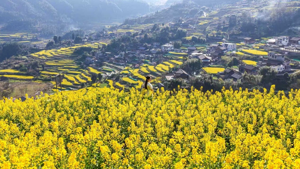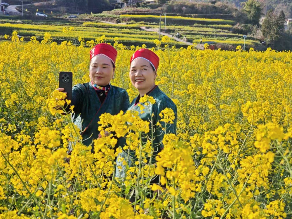 游客黄女士感慨道:“爬山爬累了,这里刚好可以欣赏油菜花。坐下来一边吃小吃,一边感受静态的香炉山,眼前就像一幅水墨画,满眼葱茏太舒服了。春天就该是这样的,郁郁葱葱又充满生机。”