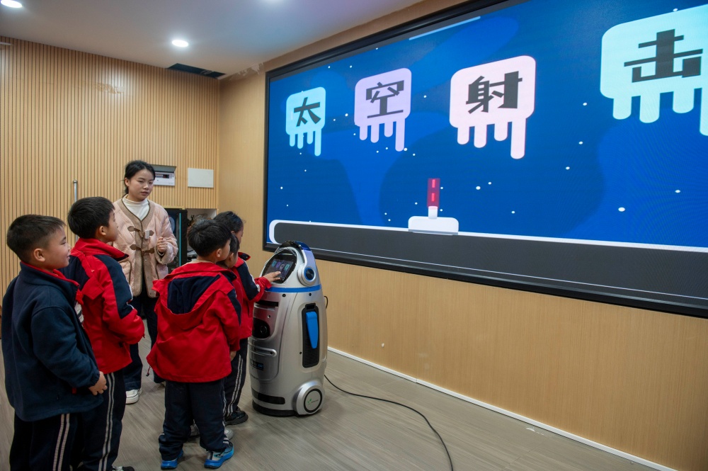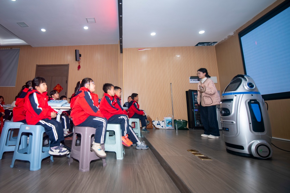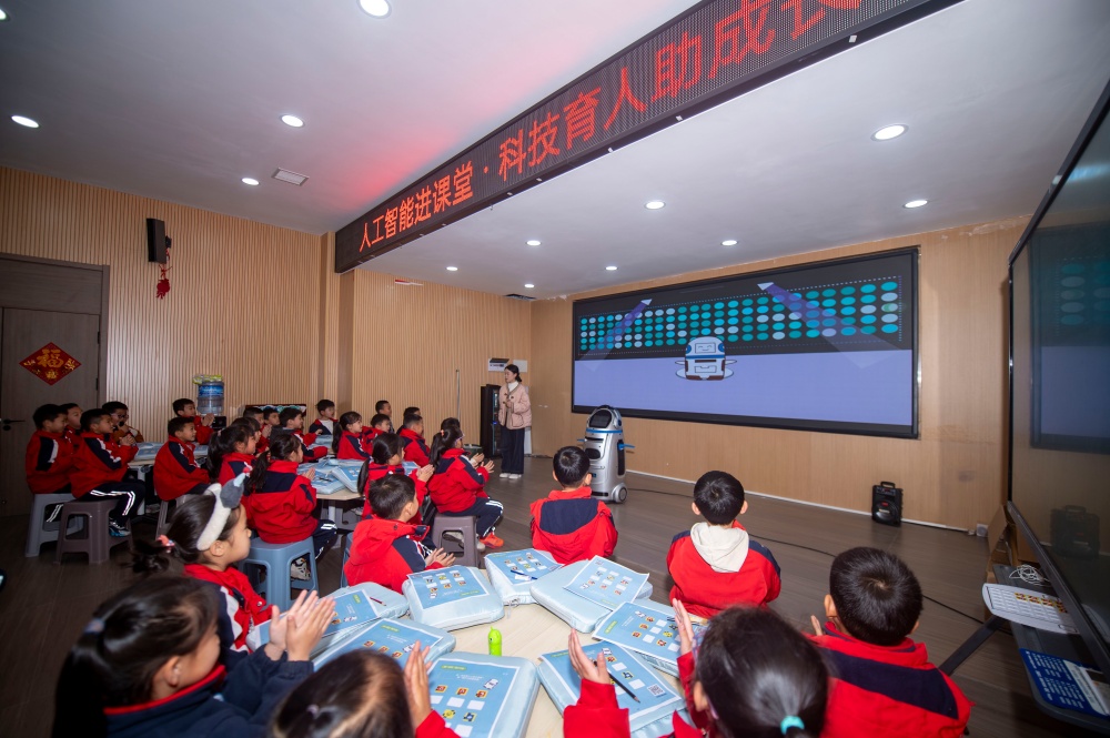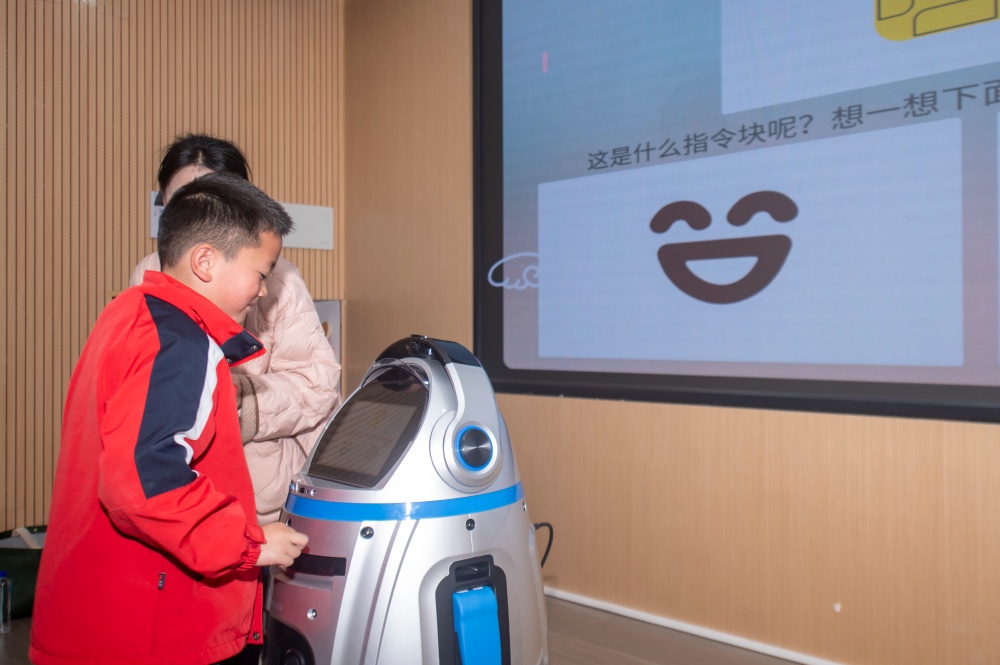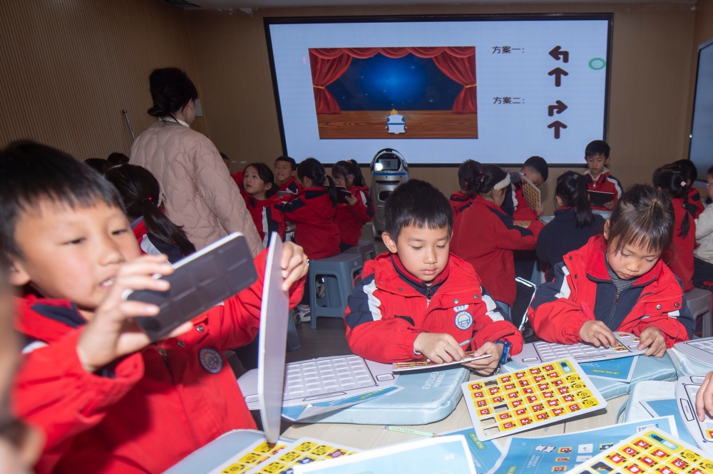 当日,贵州省黔东南苗族侗族自治州从江县城关第四小学开展“人工智能小胖机器人课堂”,来自北京航空航天大学机器人研发团队的老师为孩子们授课。课程以AI机器人为核心教学载体,通过互动体验、编程实践等方式,让孩子们零距离感受科技魅力,学习人工智能知识,在寓教于乐中点燃科学探索热情。