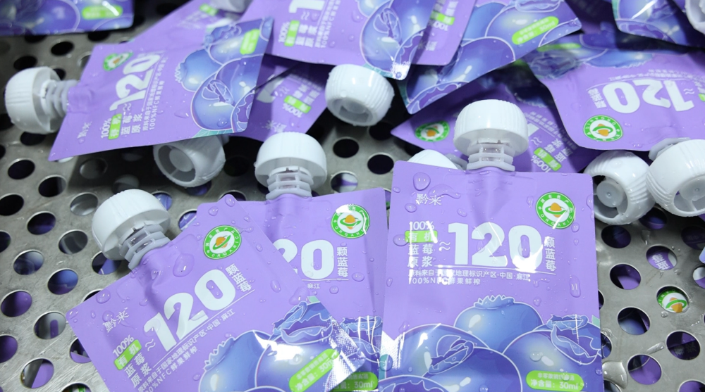 大棚蓝莓抢“鲜”上市闯市场,生产车间也在马不停蹄地加工。位于麻江县宣威镇的贵州共享鲜森食品科技有限公司里,AI智能分选线和NFC冷榨生产线运转不停歇,冷冻蓝莓、有机蓝莓原浆等产品出口内销两旺。目前已出口到土耳其、俄罗斯、哥伦比亚等国家,预计2026年出口量会达到3000吨。