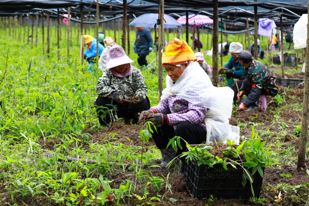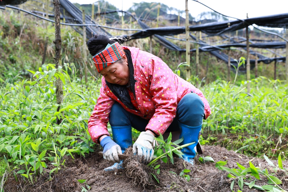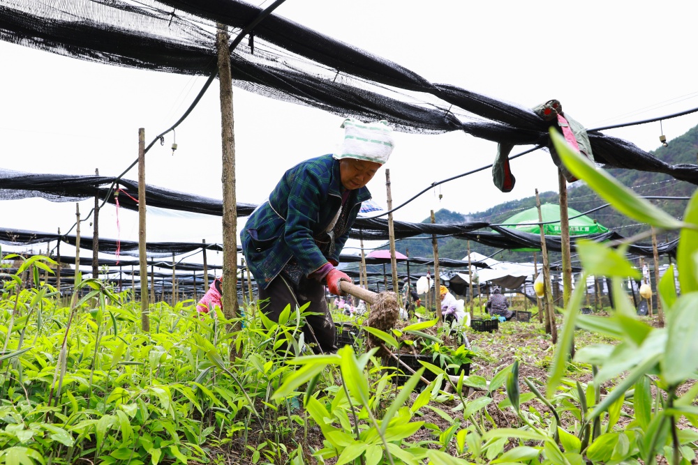 产业落地,造福一方。岑松镇巫门村村民万受先在基地一边熟练地分拣药苗,一边笑着说:“这个基地我们经常来做活路,也做了两三年了,离家近,一天110元,我们来起苗、除草、打药这些,也蛮好的。”对当地村民来说,中药材育苗基地不仅盘活了闲置田地,更让大家在家门口就能挣到稳定收入。